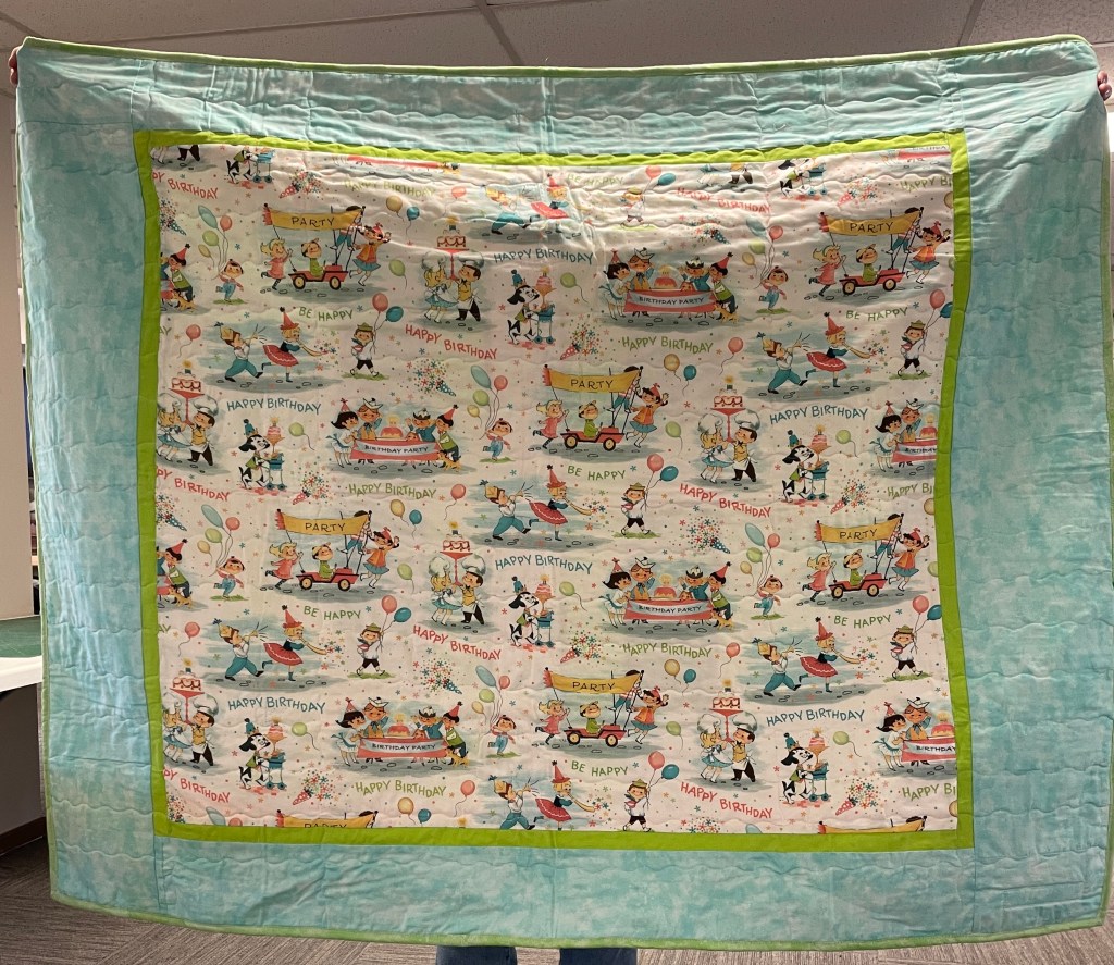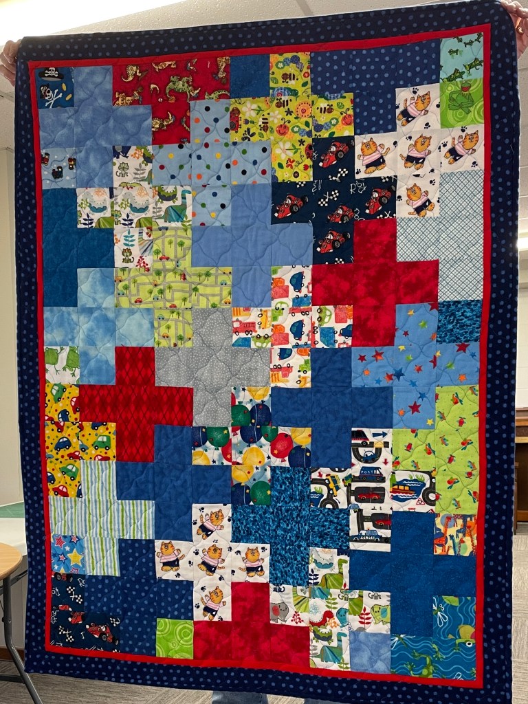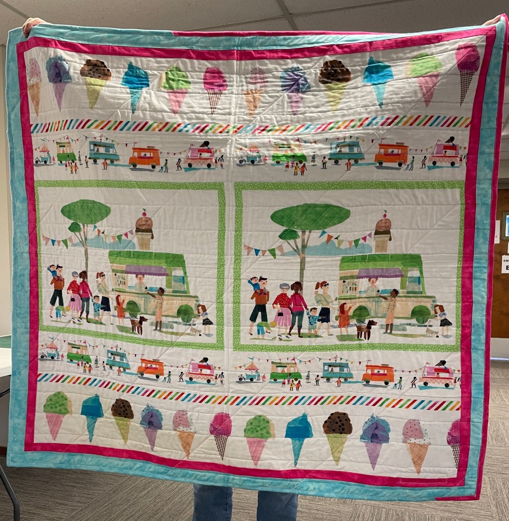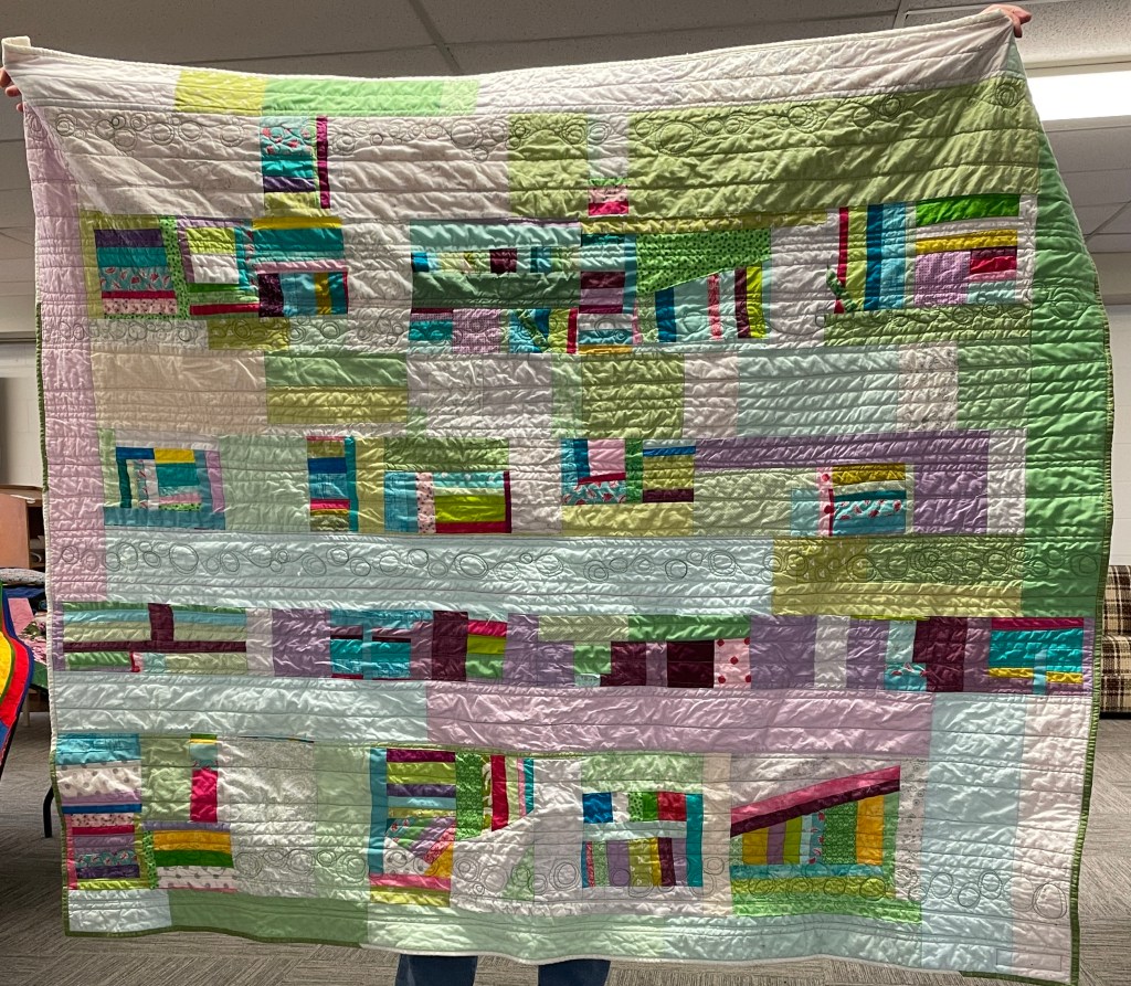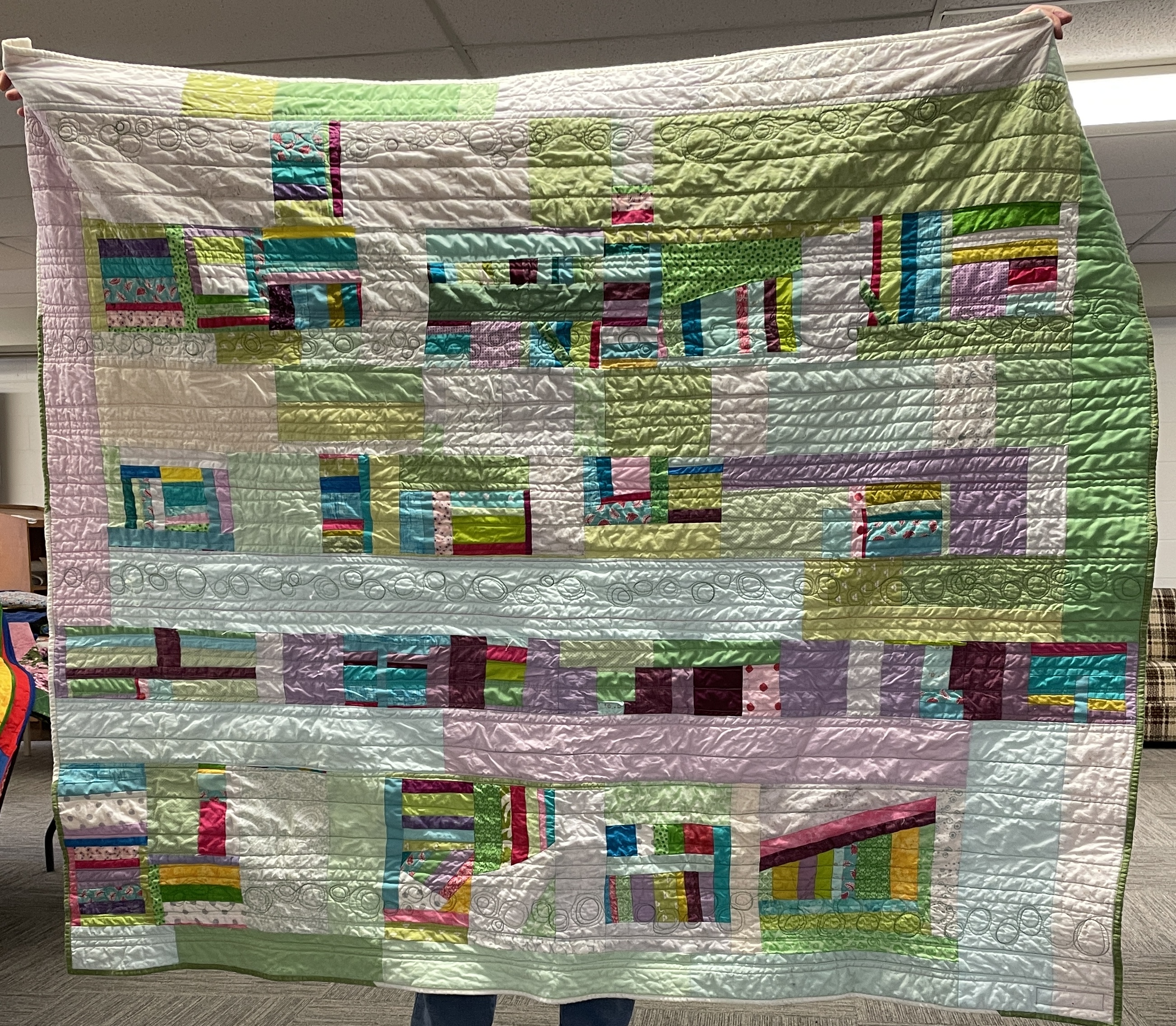 Our Sit ‘n’ Sew group continues to create quilts that will give comfort and a message of caring to our community. I’m so thankful for their gifts and abilities and their willingness to use them to make these quilts.