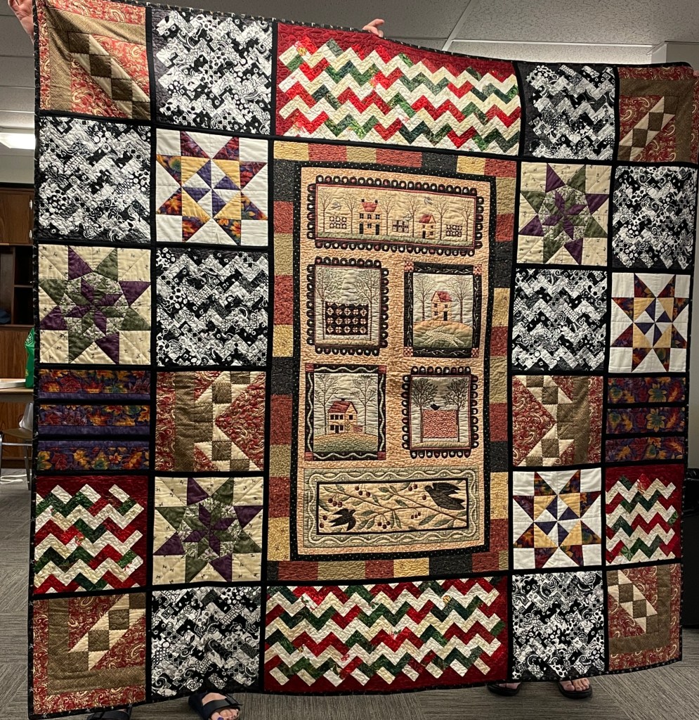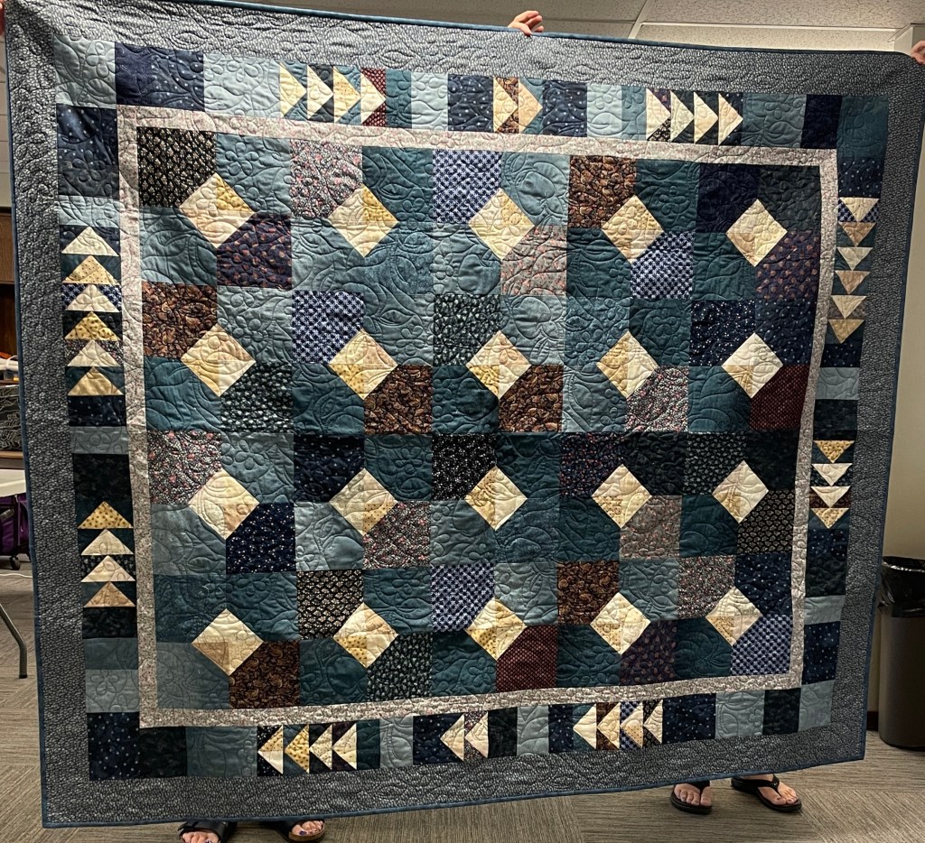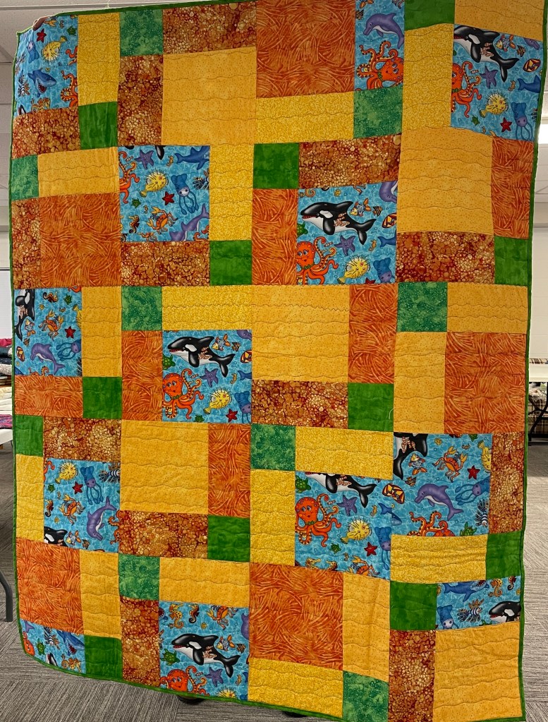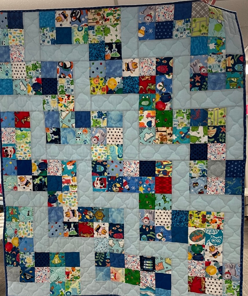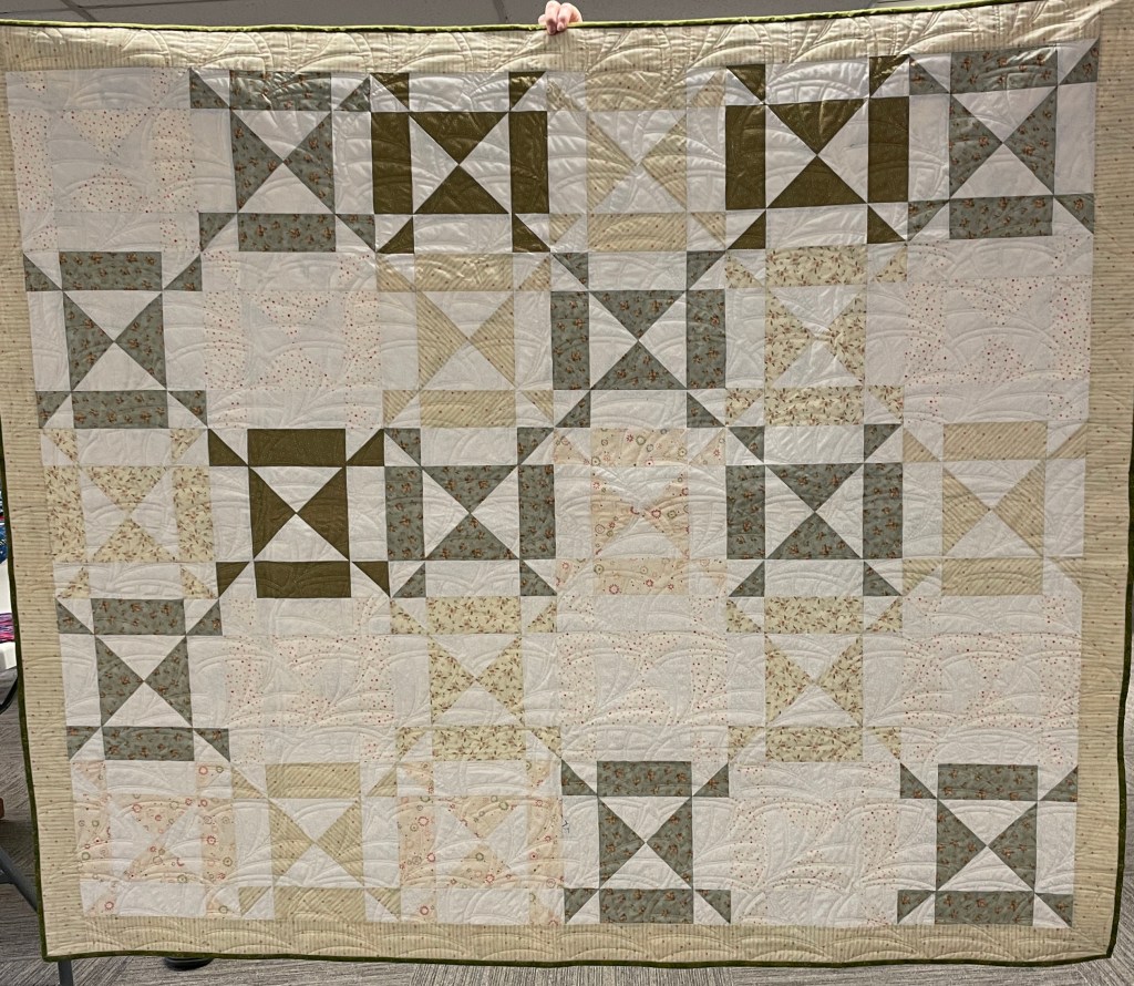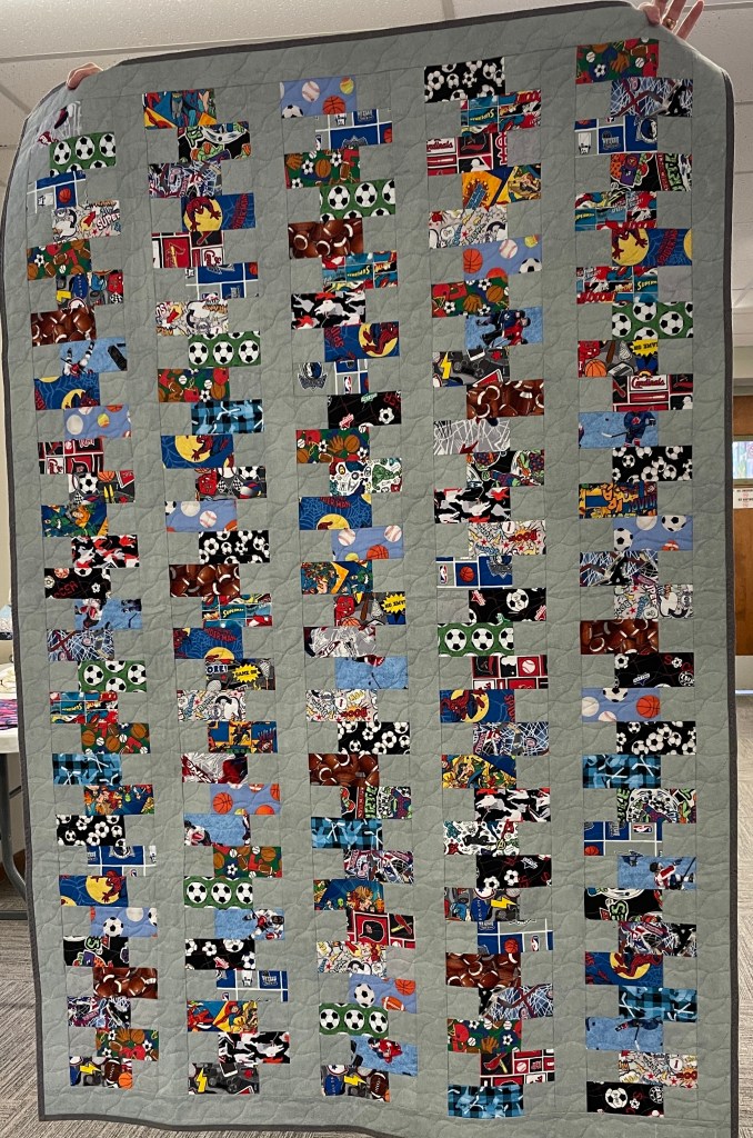 Our makers have been busy over the summer. They turned in 36 quilts, some at the September guild meeting and some at today’s Sit ‘n’ Sew at Maryvale. Thank you makers!!! A dozen quilts will be making their way to Journey Home Hospice (a hospice for the homeless) soon.