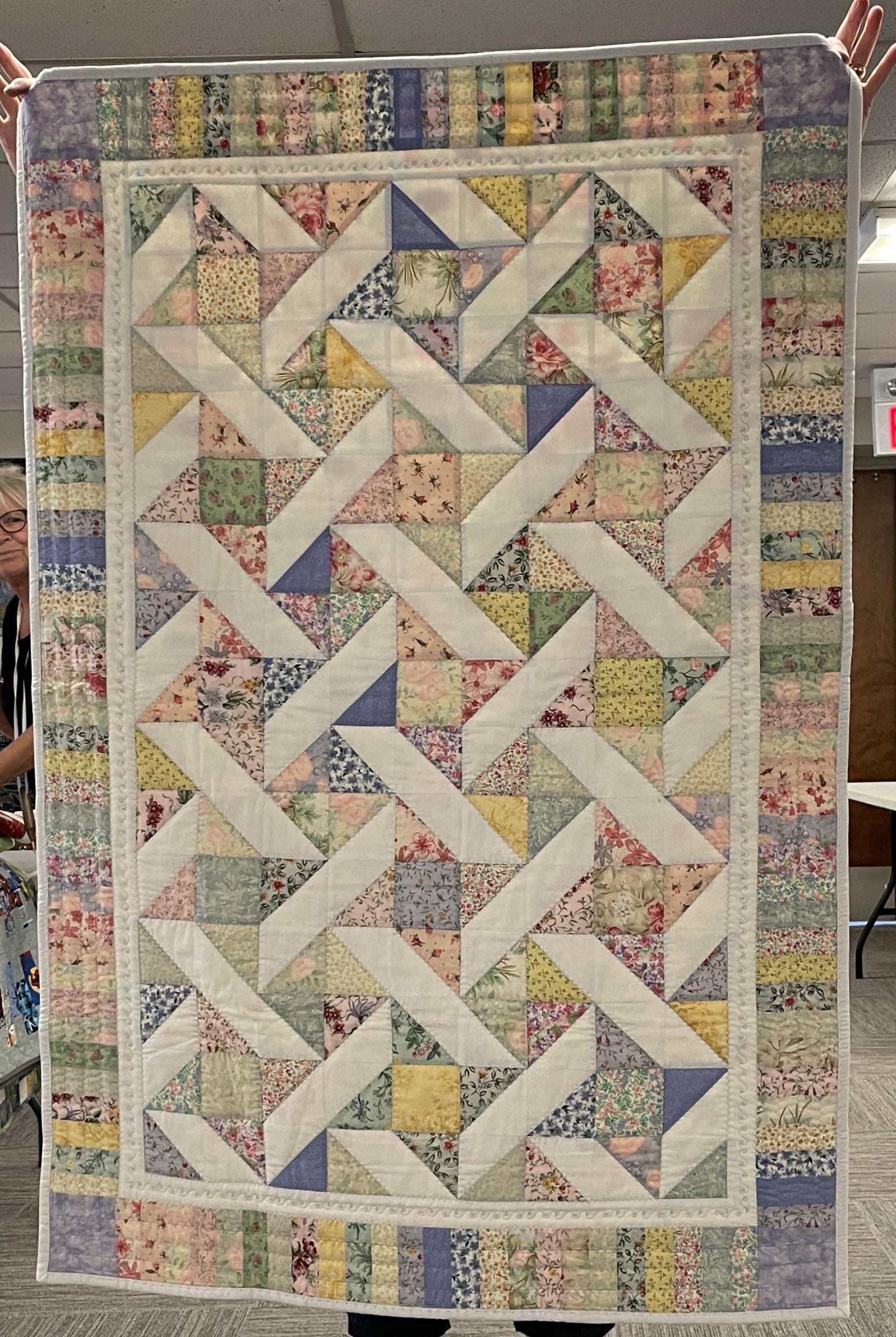 Our makers have been busy over the summer. They turned in 36 quilts, some at the September guild meeting and some at today’s Sit ‘n’ Sew at Maryvale. Thank you makers!!! A dozen quilts will be making their way to Journey Home Hospice (a hospice for the homeless) soon.