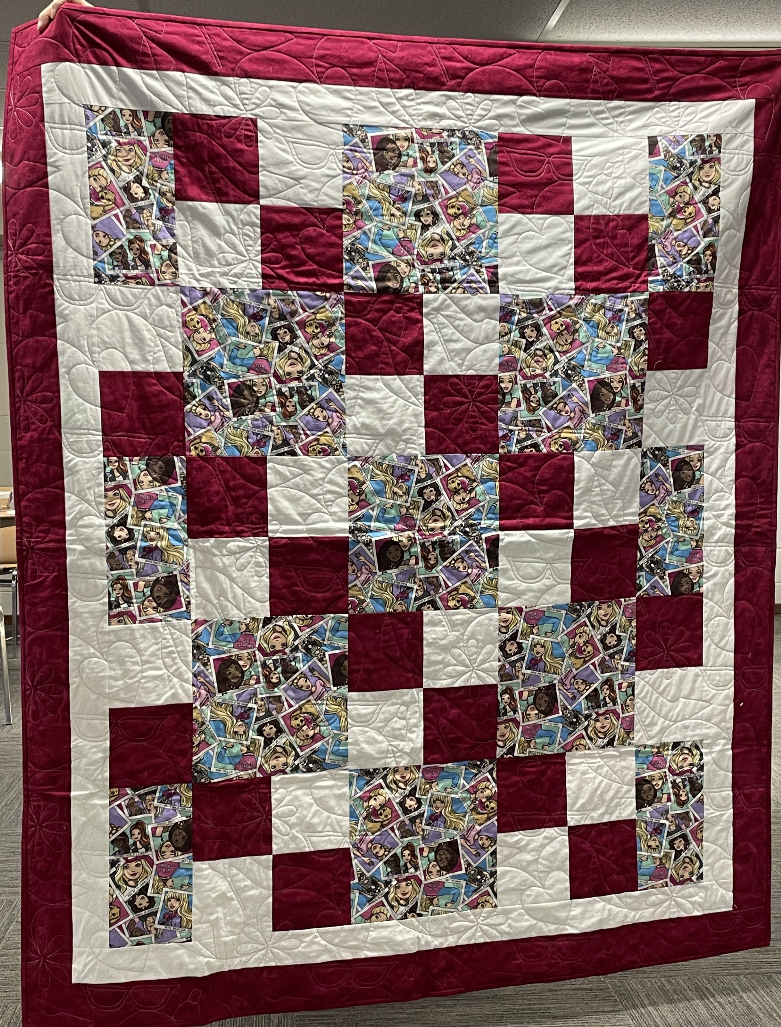 Sit ‘n’ Sew at Maryvale is a chance to see all the comfort quilts that have been turned in recently. There were 25 quilts today at the show ‘n’ tell. Such lovely work and generous makers. A great big “Thank you” to those who completed these quilts.