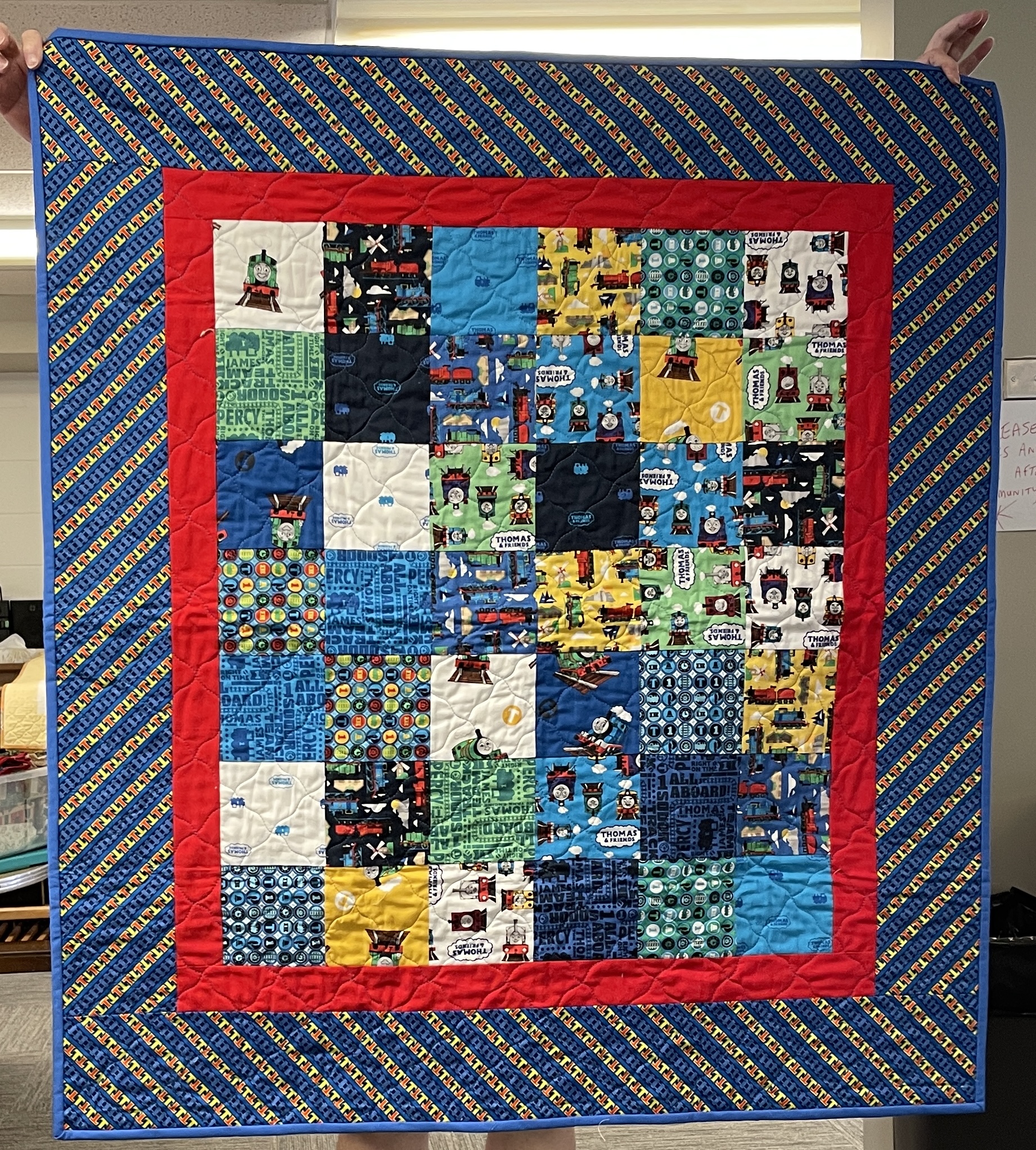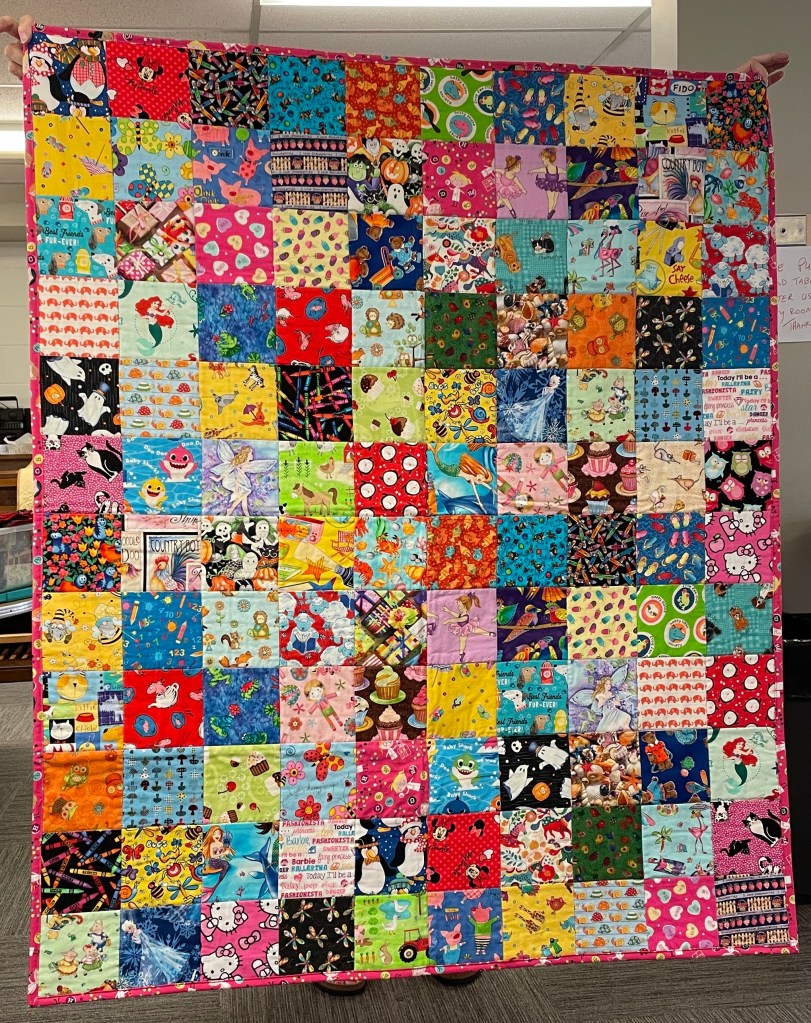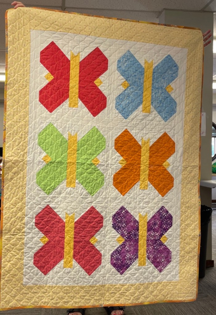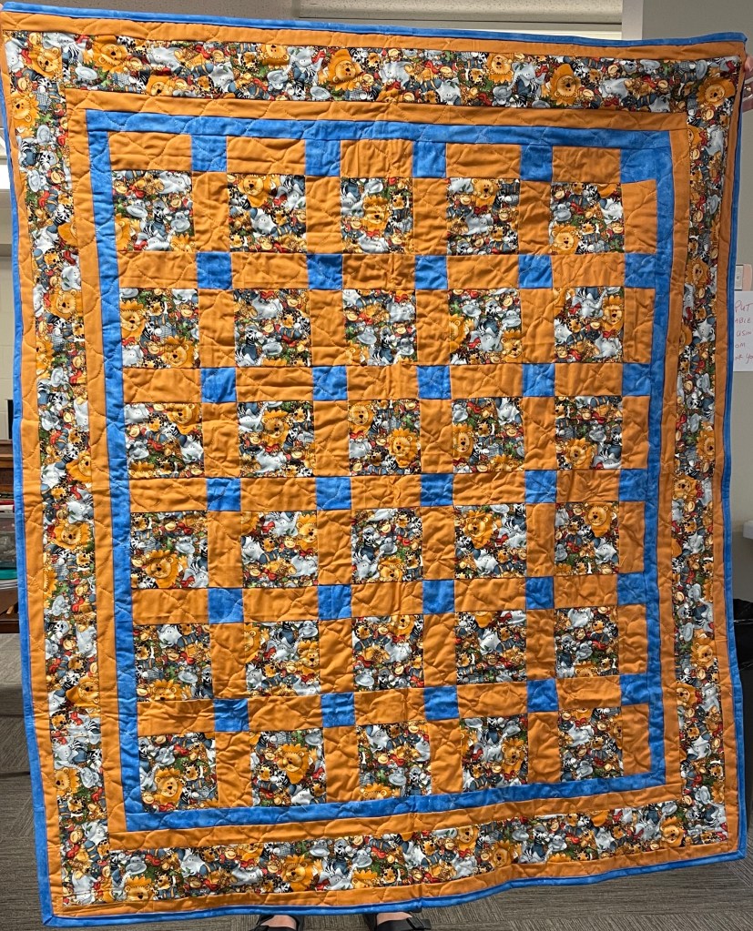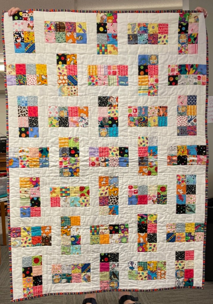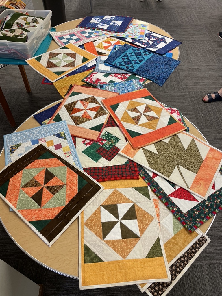 At the bi-monthly Sit ‘n’ Sew at Maryvale we are treated to a show and tell of the newly completed comfort quilts. This week there were 14 quilts turned in and a number of placemats as well.