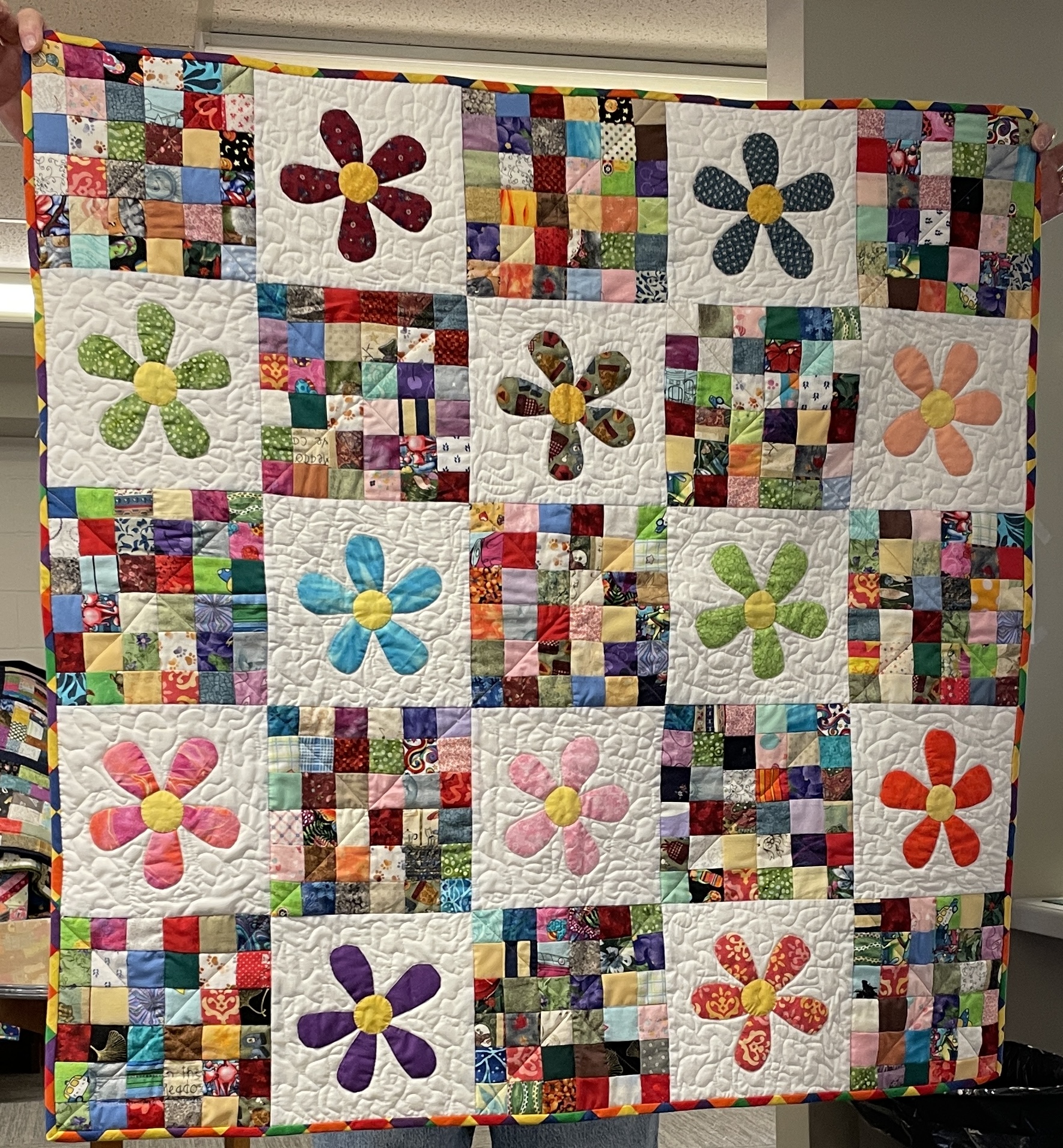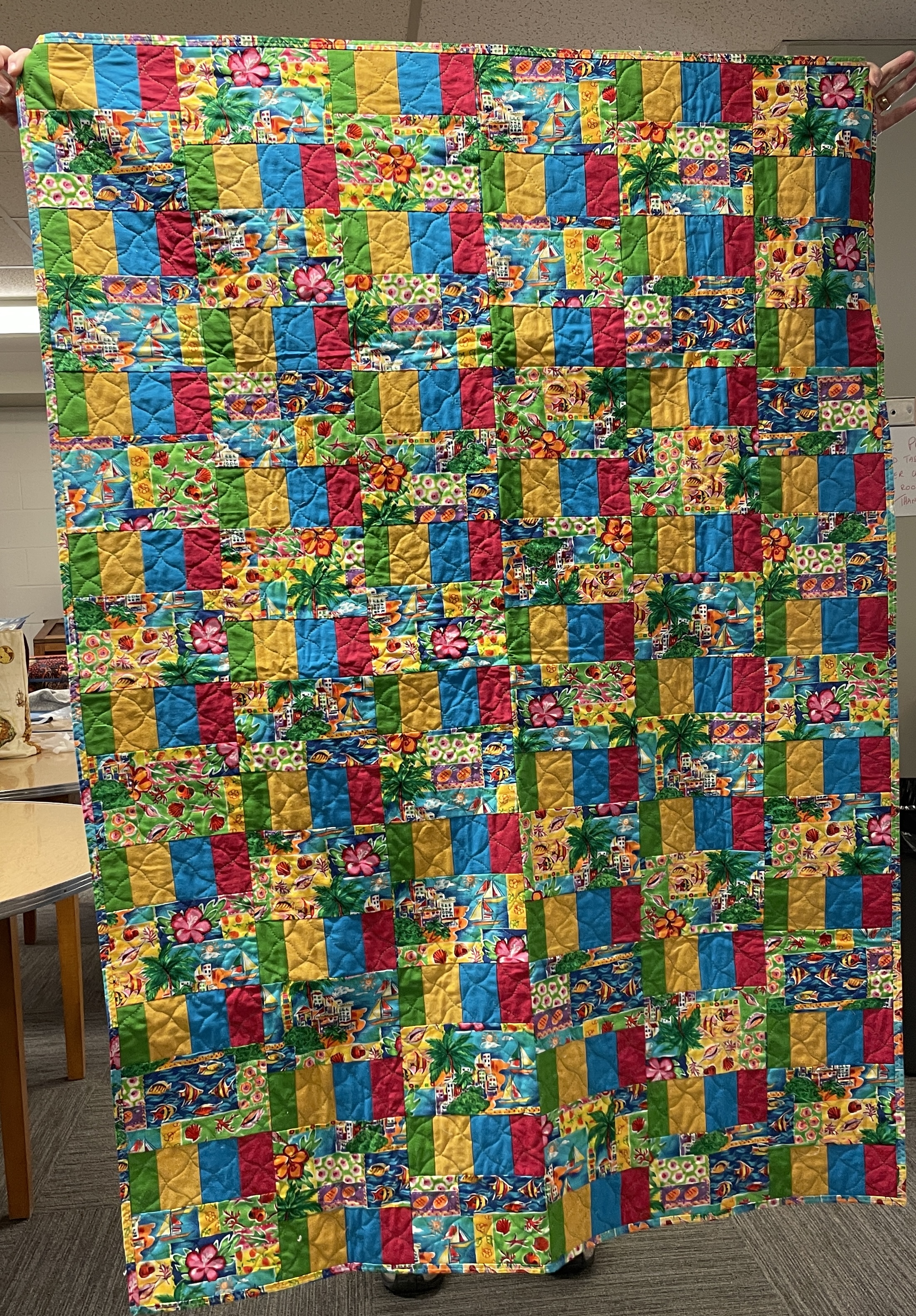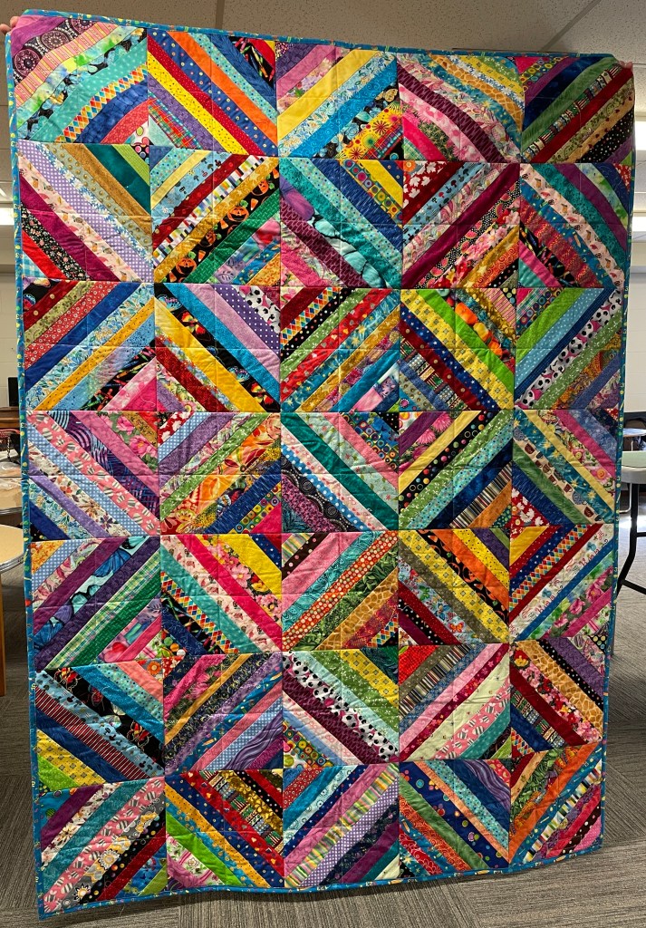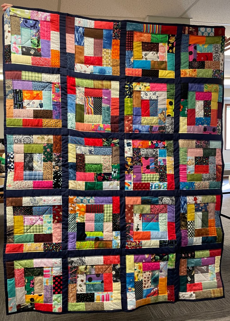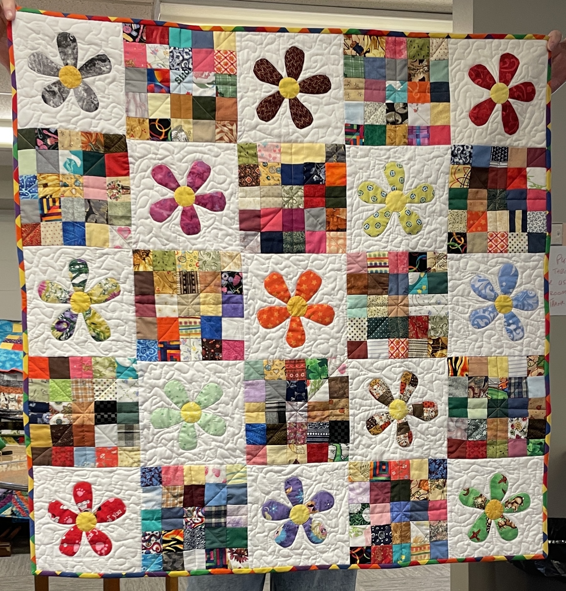 At today’s Sit ‘n’ Sew we had quite a show and tell. Thirty-four quilts were displayed and almost 90 placemats. Our shelves are filling up. Thank you to all who contribute their time, talent and fabrics to our Comfort Quilts.