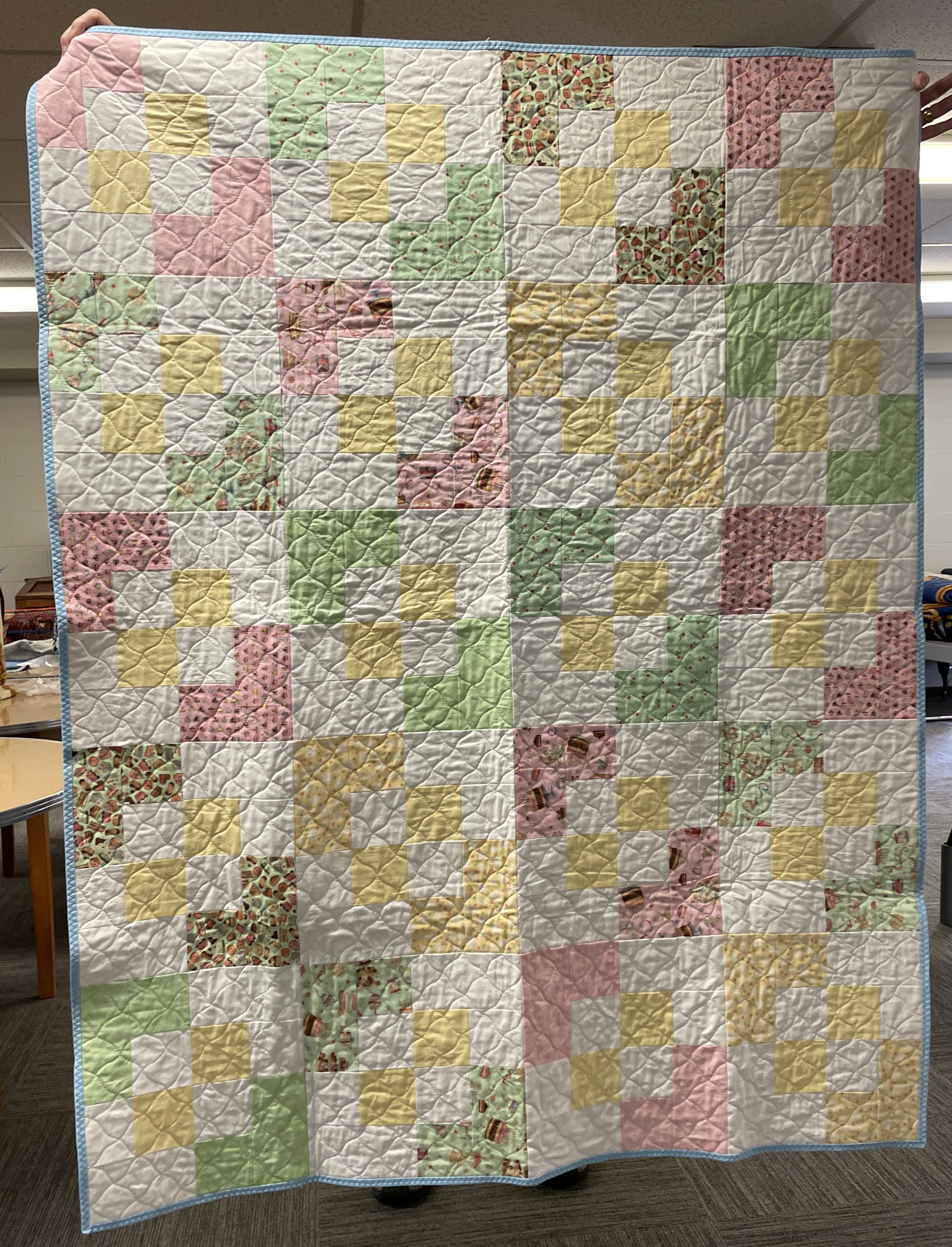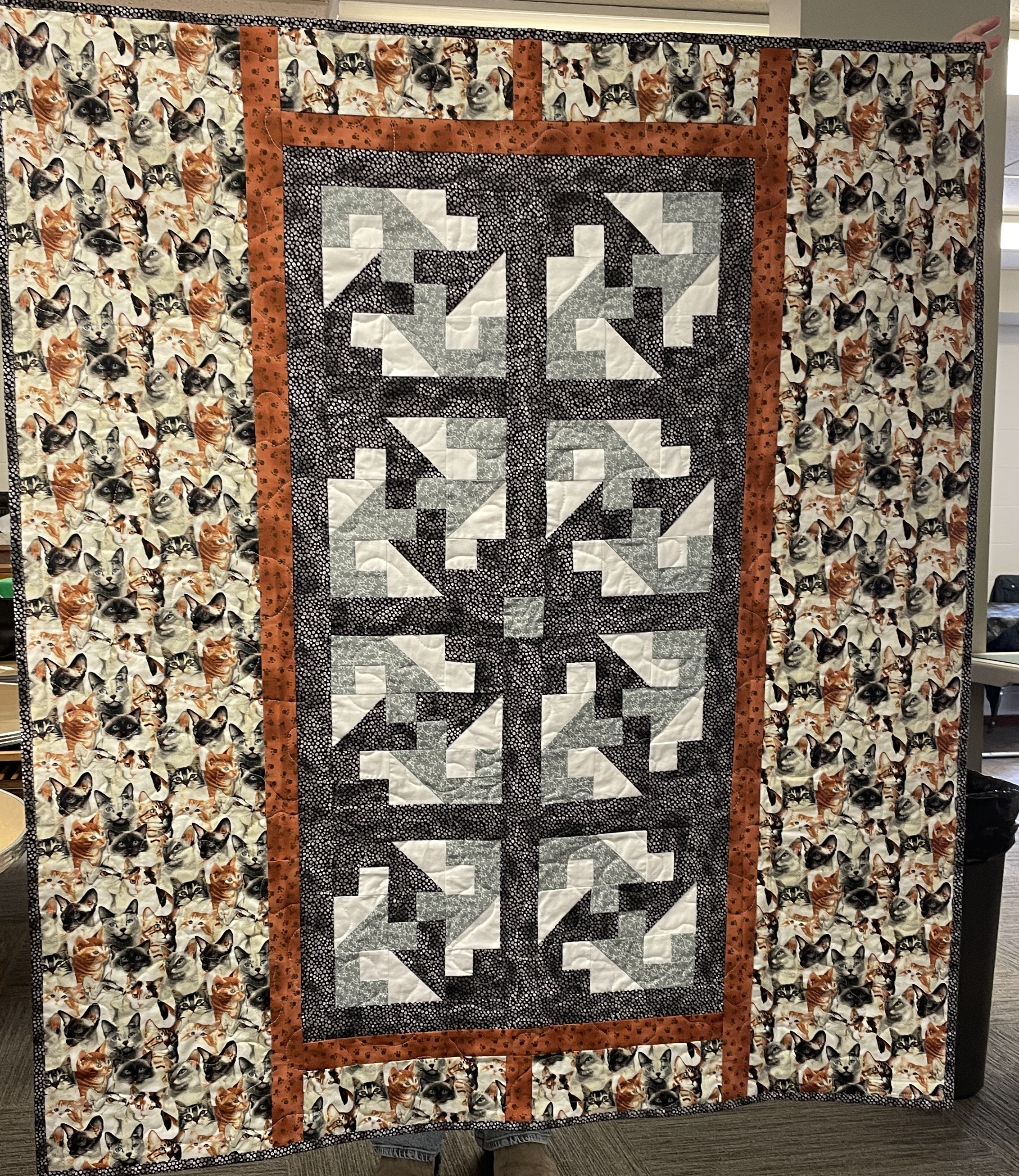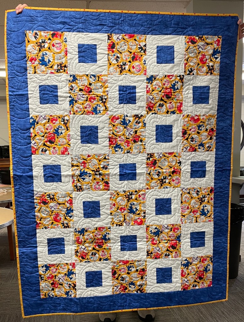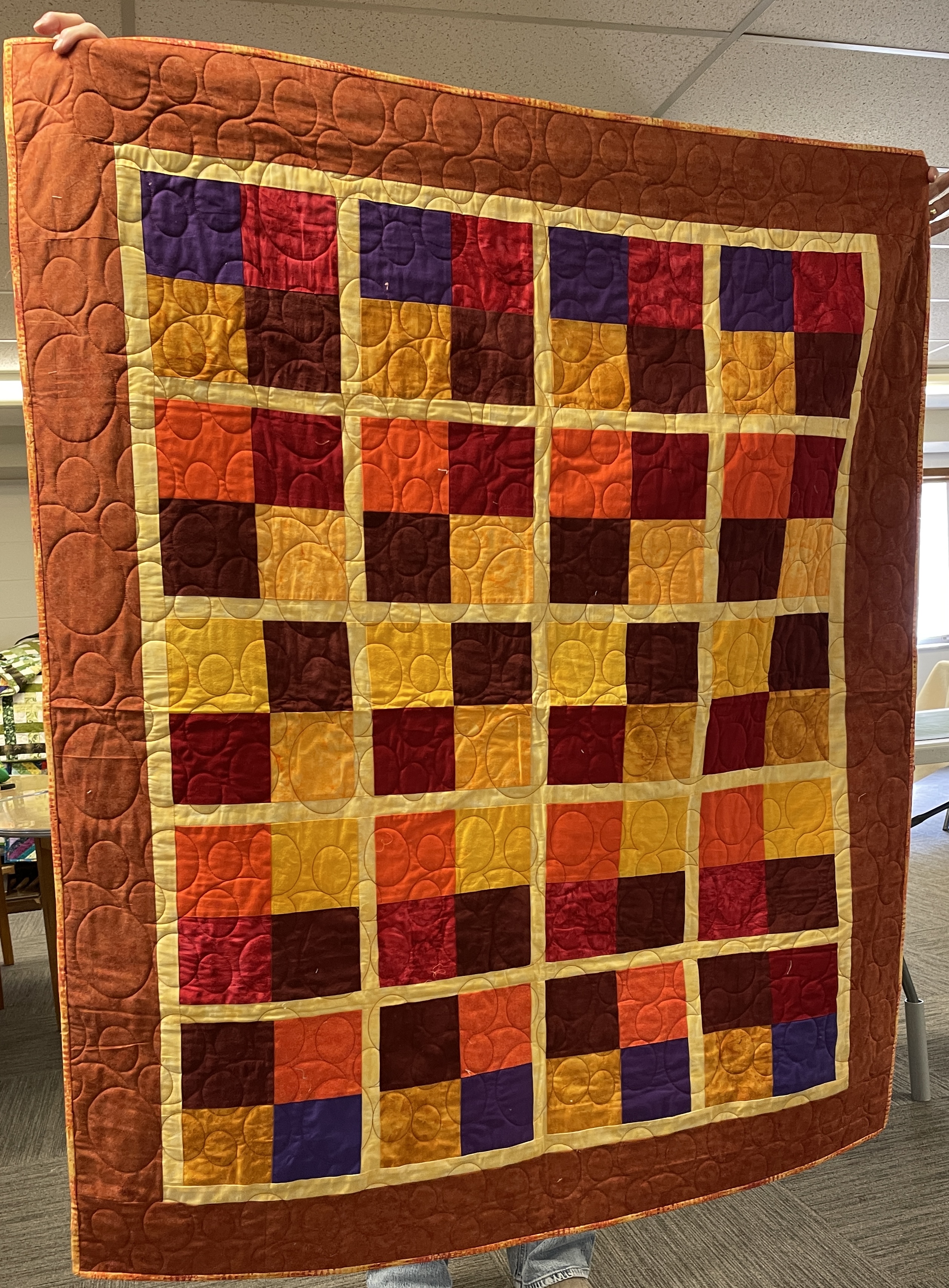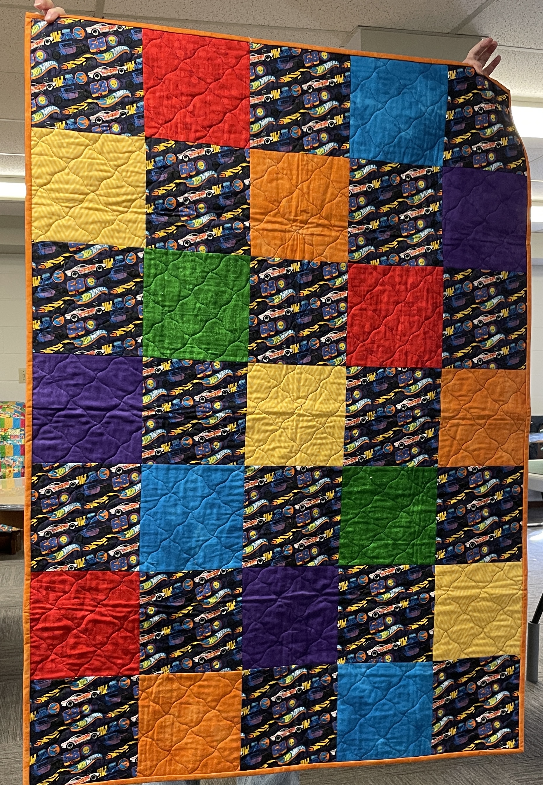 At today’s Sit ‘n’ Sew we had quite a show and tell. Thirty-four quilts were displayed and almost 90 placemats. Our shelves are filling up. Thank you to all who contribute their time, talent and fabrics to our Comfort Quilts.