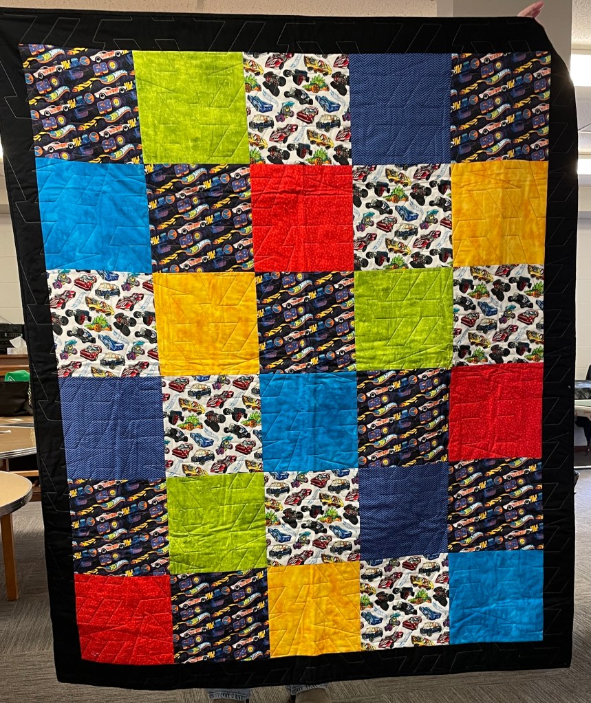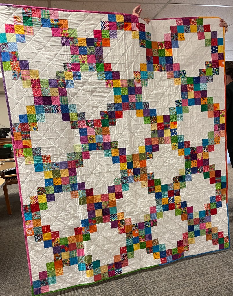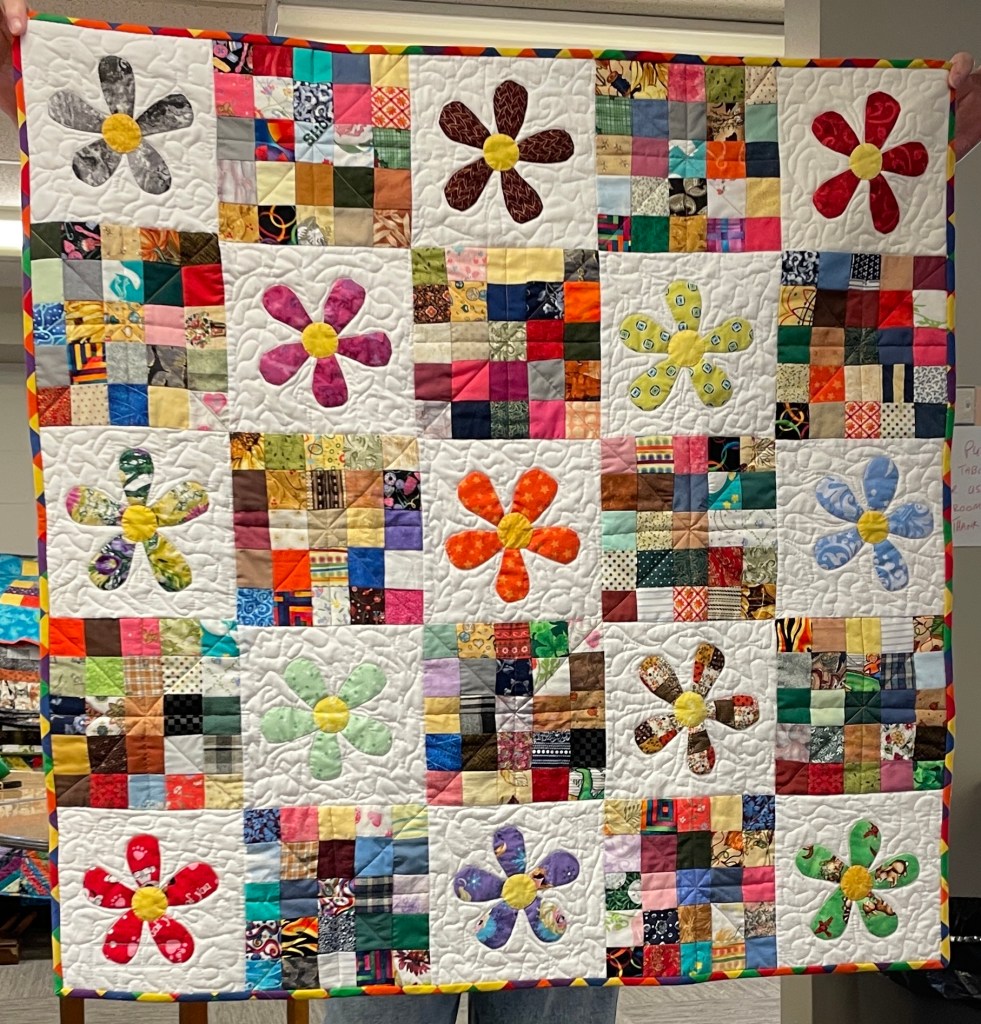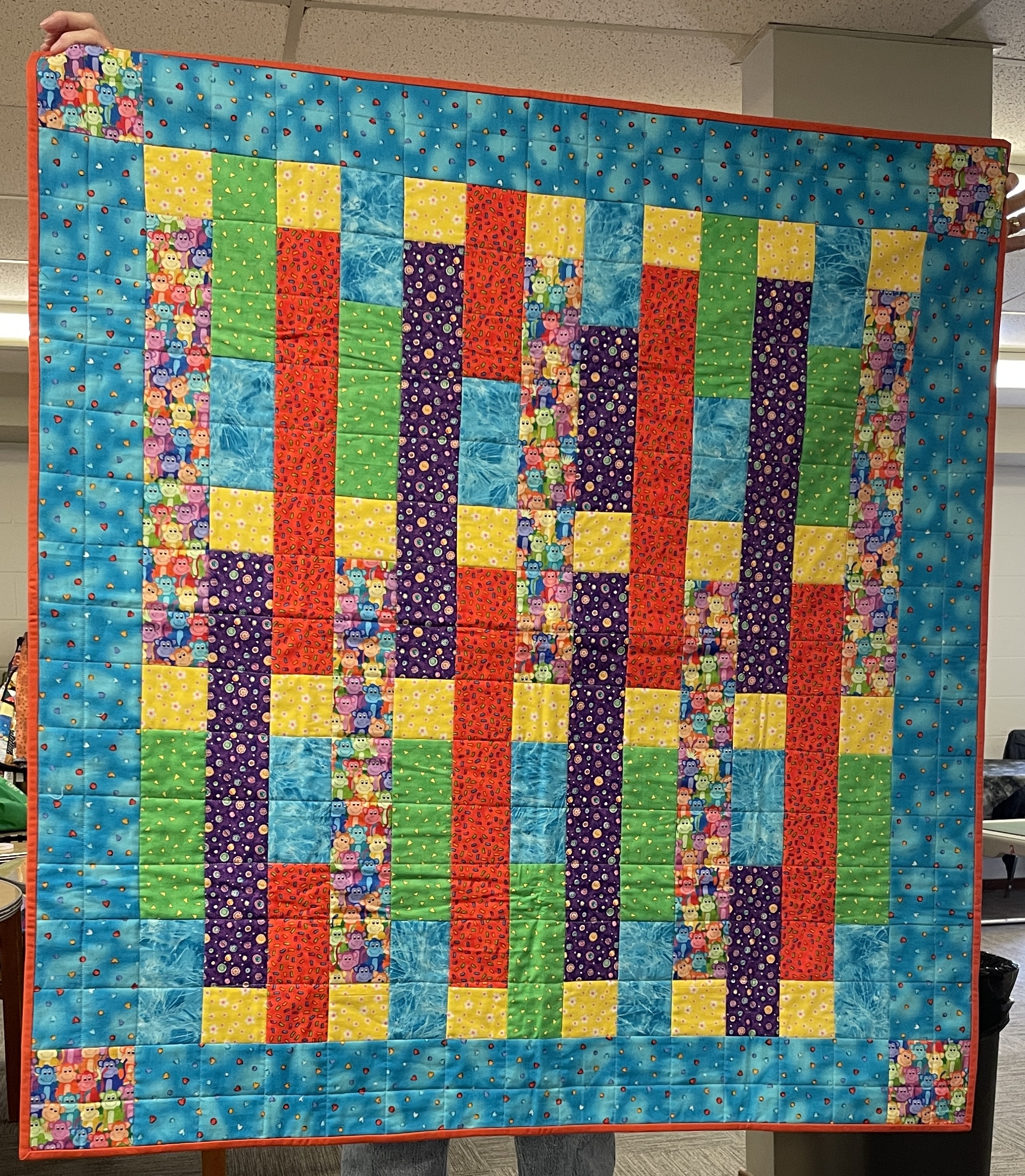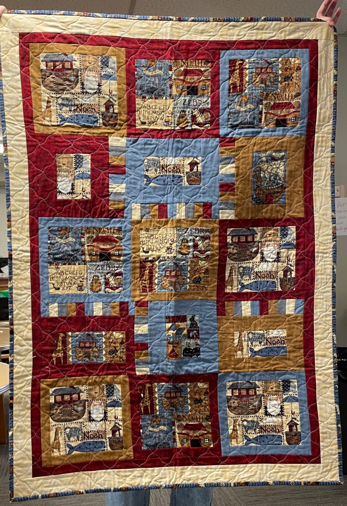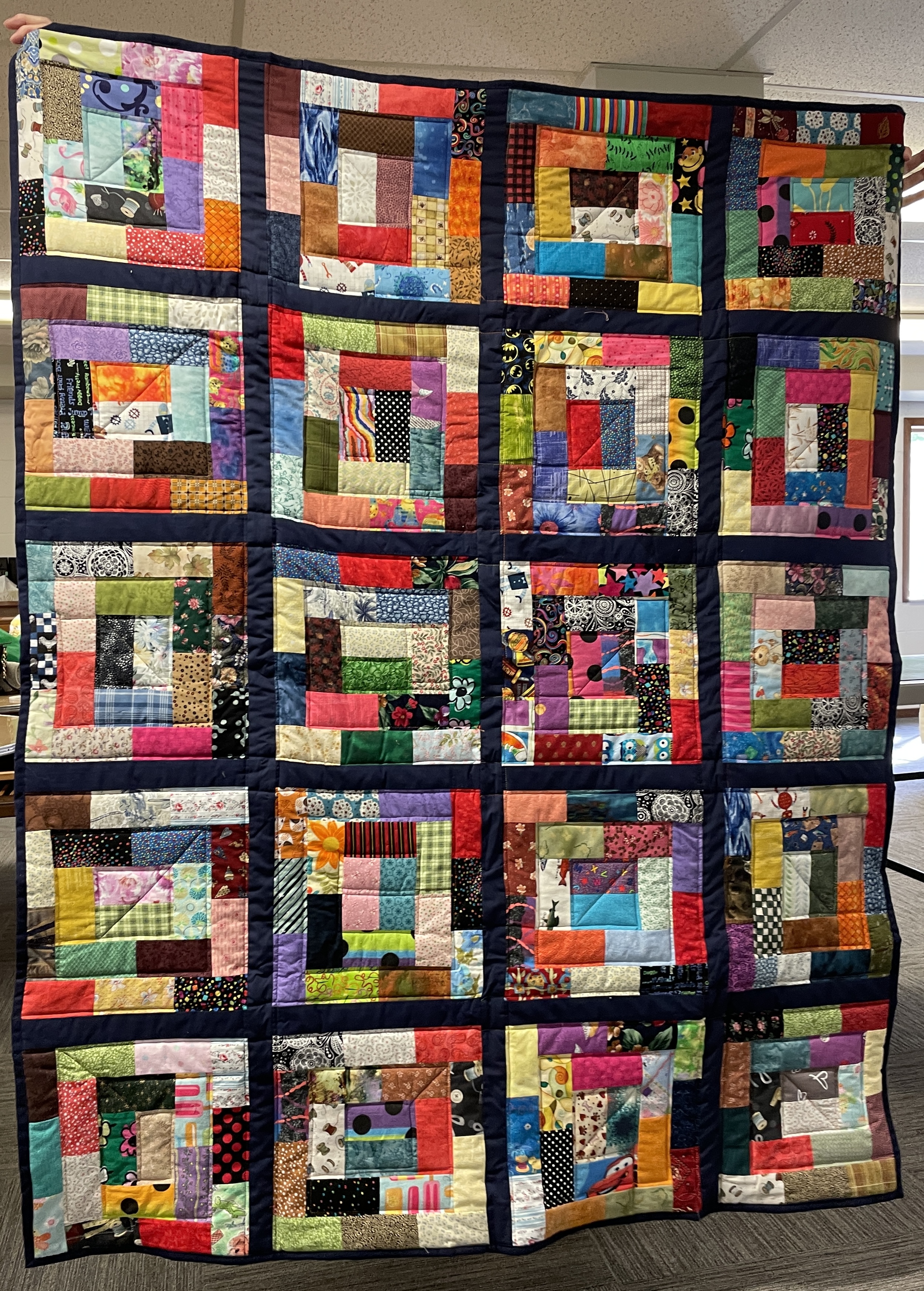 At today’s Sit ‘n’ Sew we had quite a show and tell. Thirty-four quilts were displayed and almost 90 placemats. Our shelves are filling up. Thank you to all who contribute their time, talent and fabrics to our Comfort Quilts.