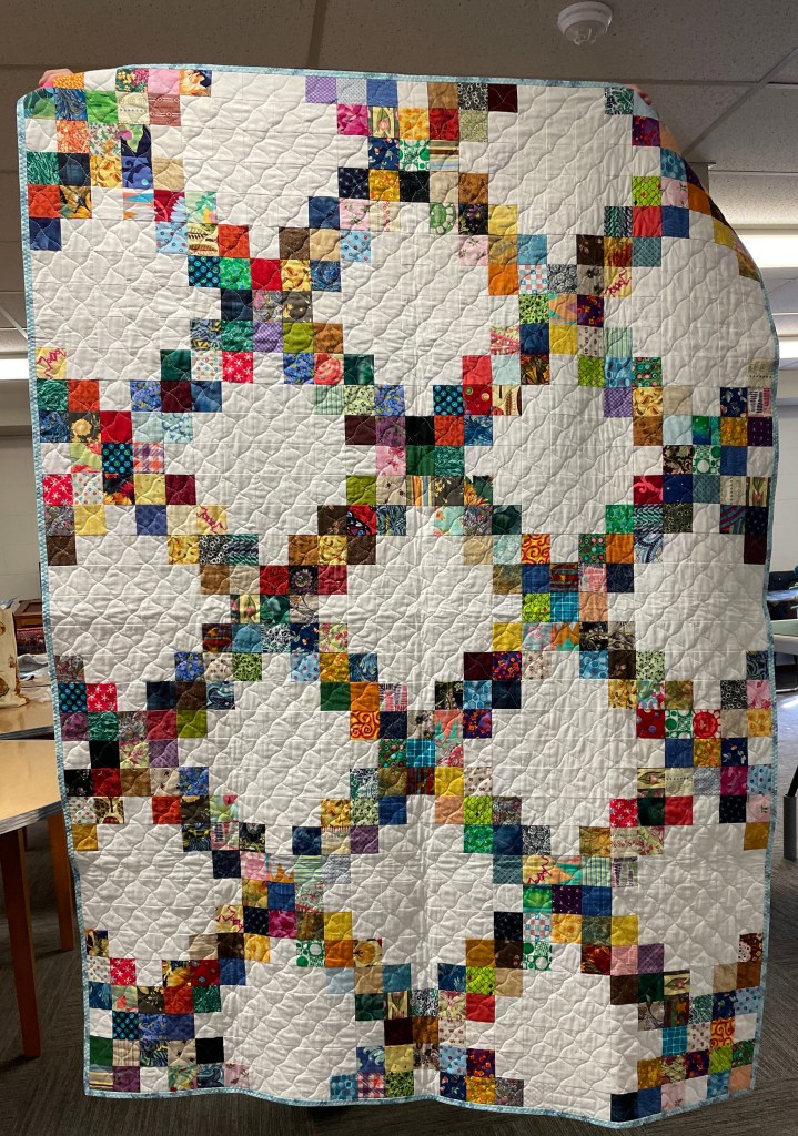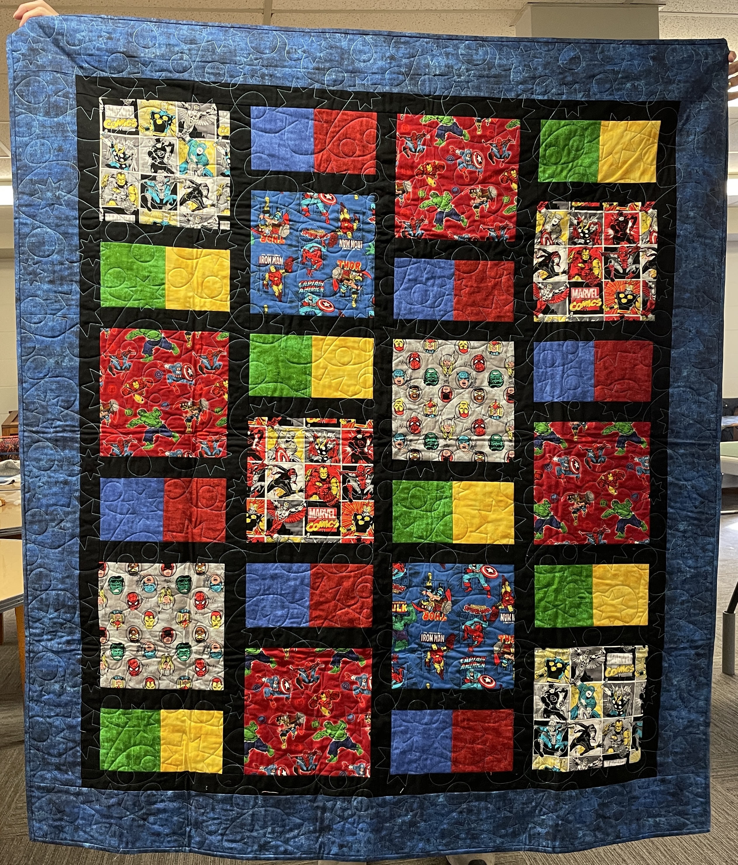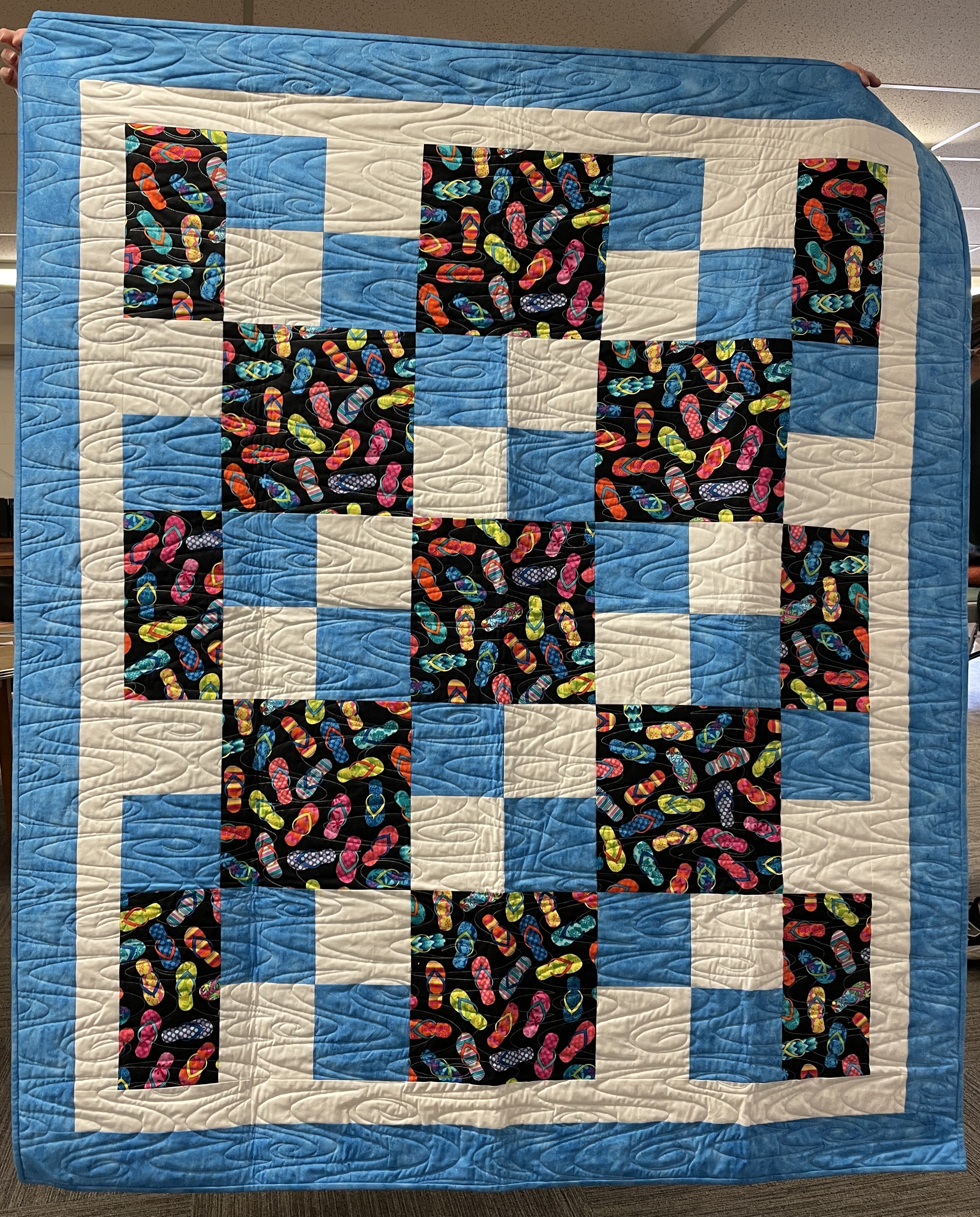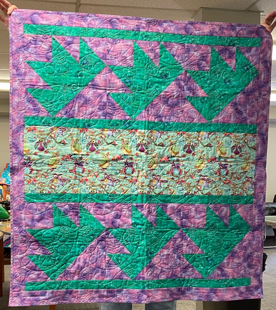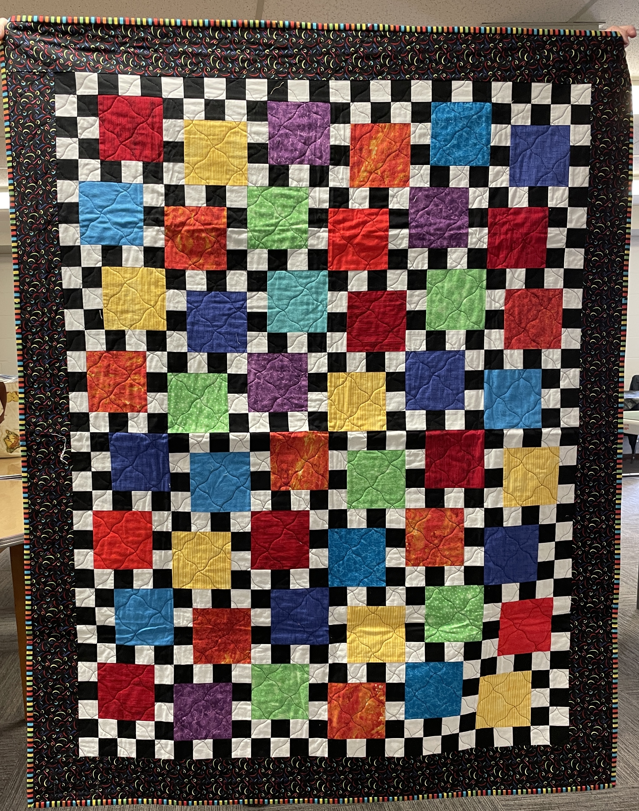 At today’s Sit ‘n’ Sew we had quite a show and tell. Thirty-four quilts were displayed and almost 90 placemats. Our shelves are filling up. Thank you to all who contribute their time, talent and fabrics to our Comfort Quilts.