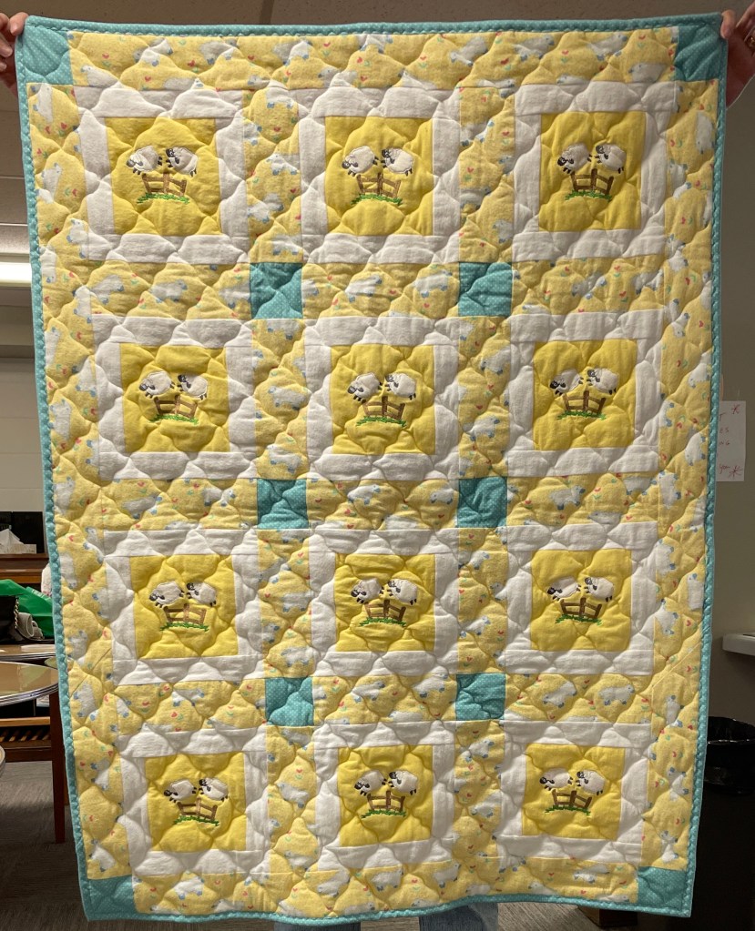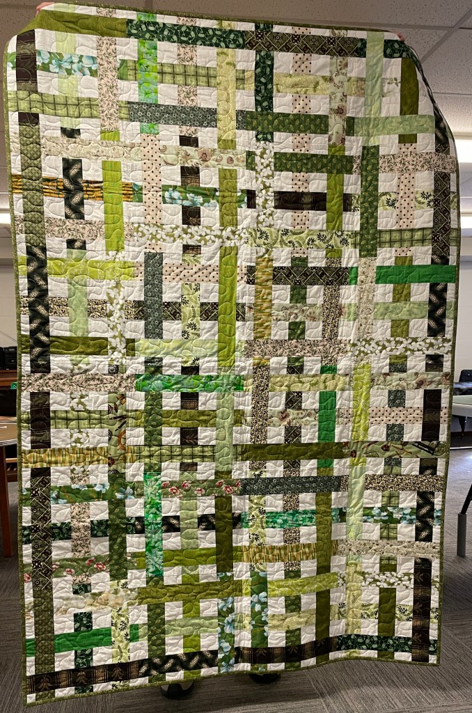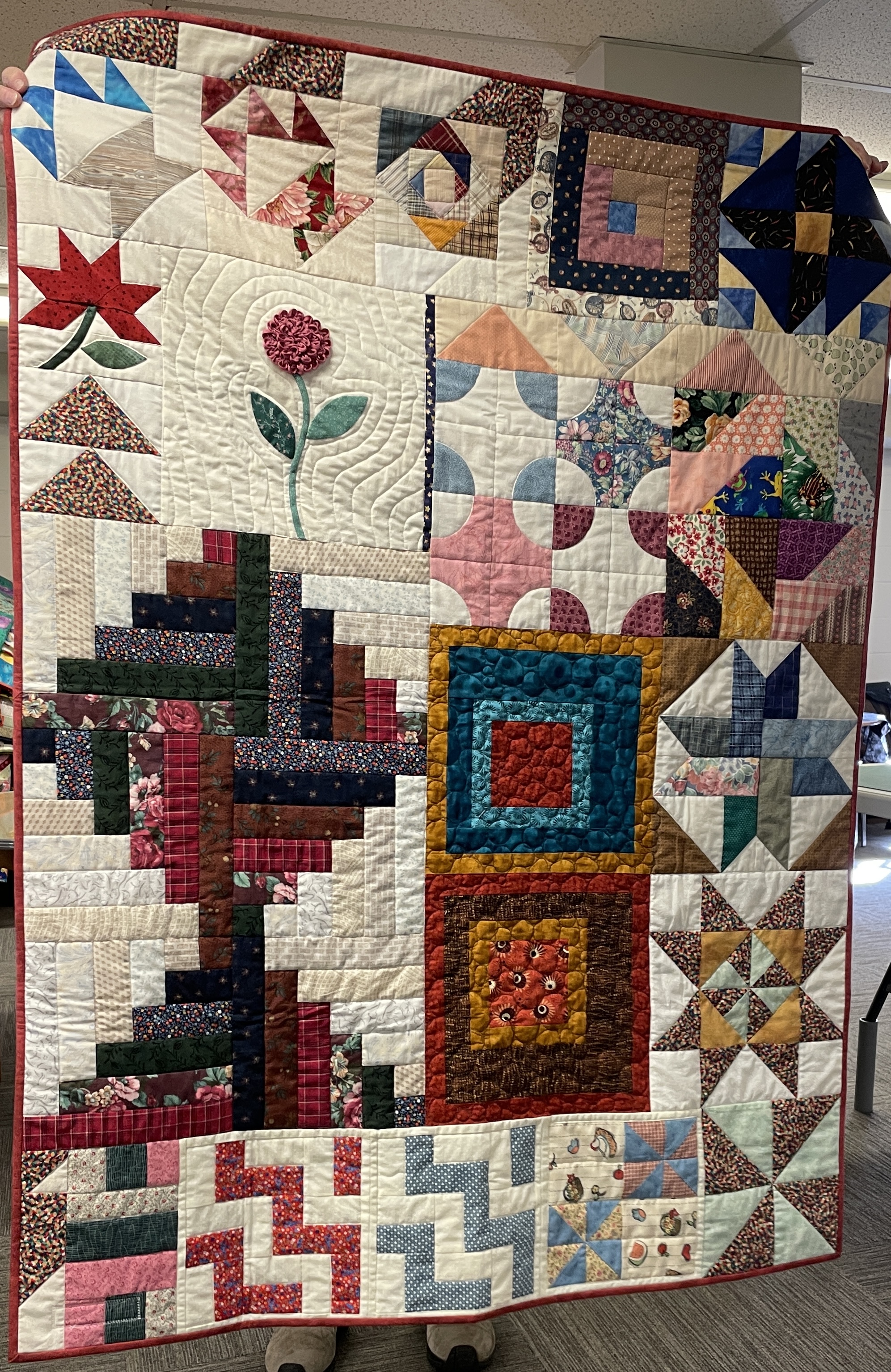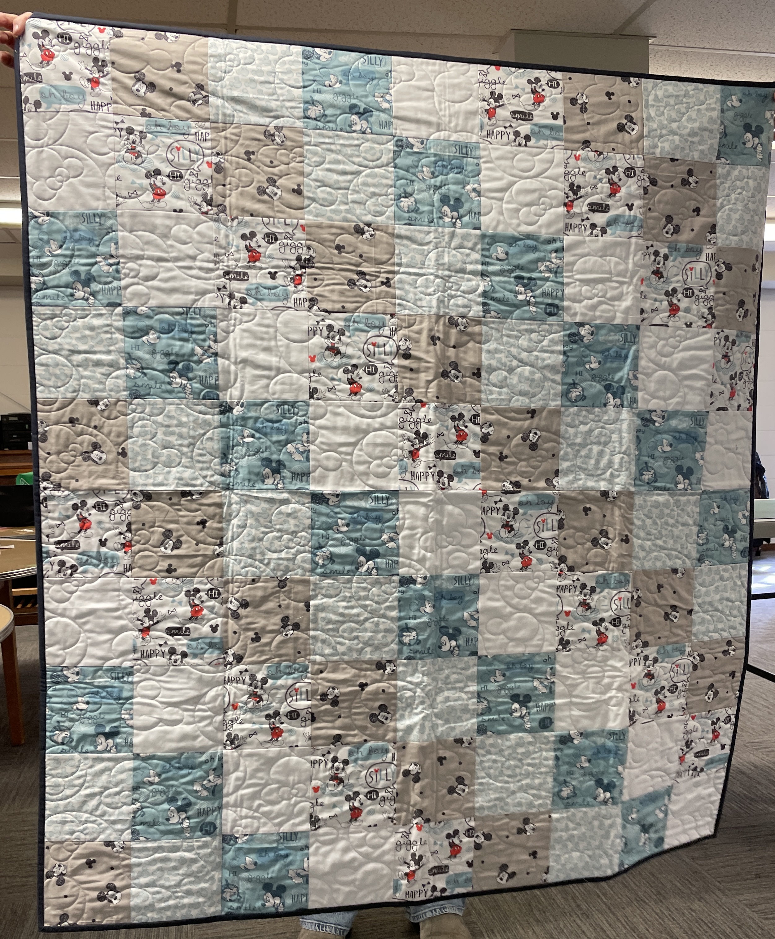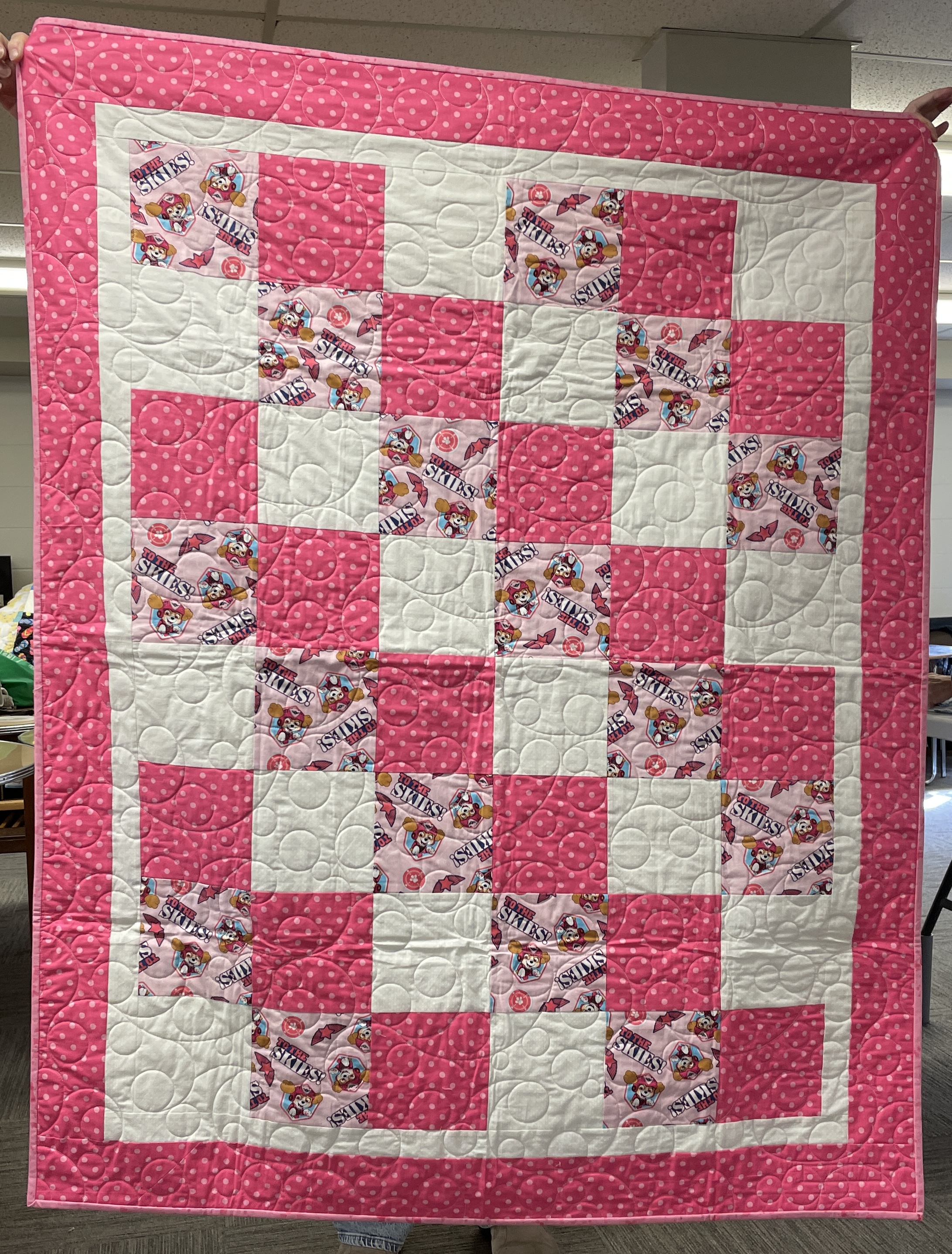At today’s Sit ‘n’ Sew we had quite a show and tell. Thirty-four quilts were displayed and almost 90 placemats. Our shelves are filling up. Thank you to all who contribute their time, talent and fabrics to our Comfort Quilts.