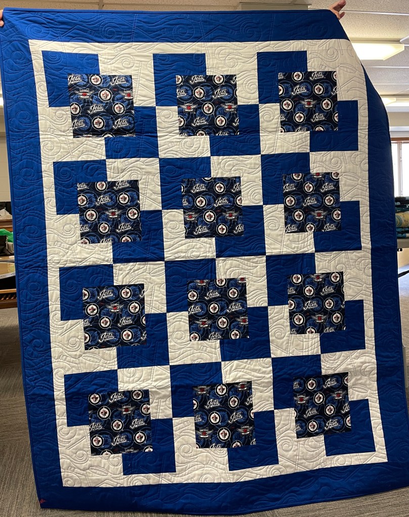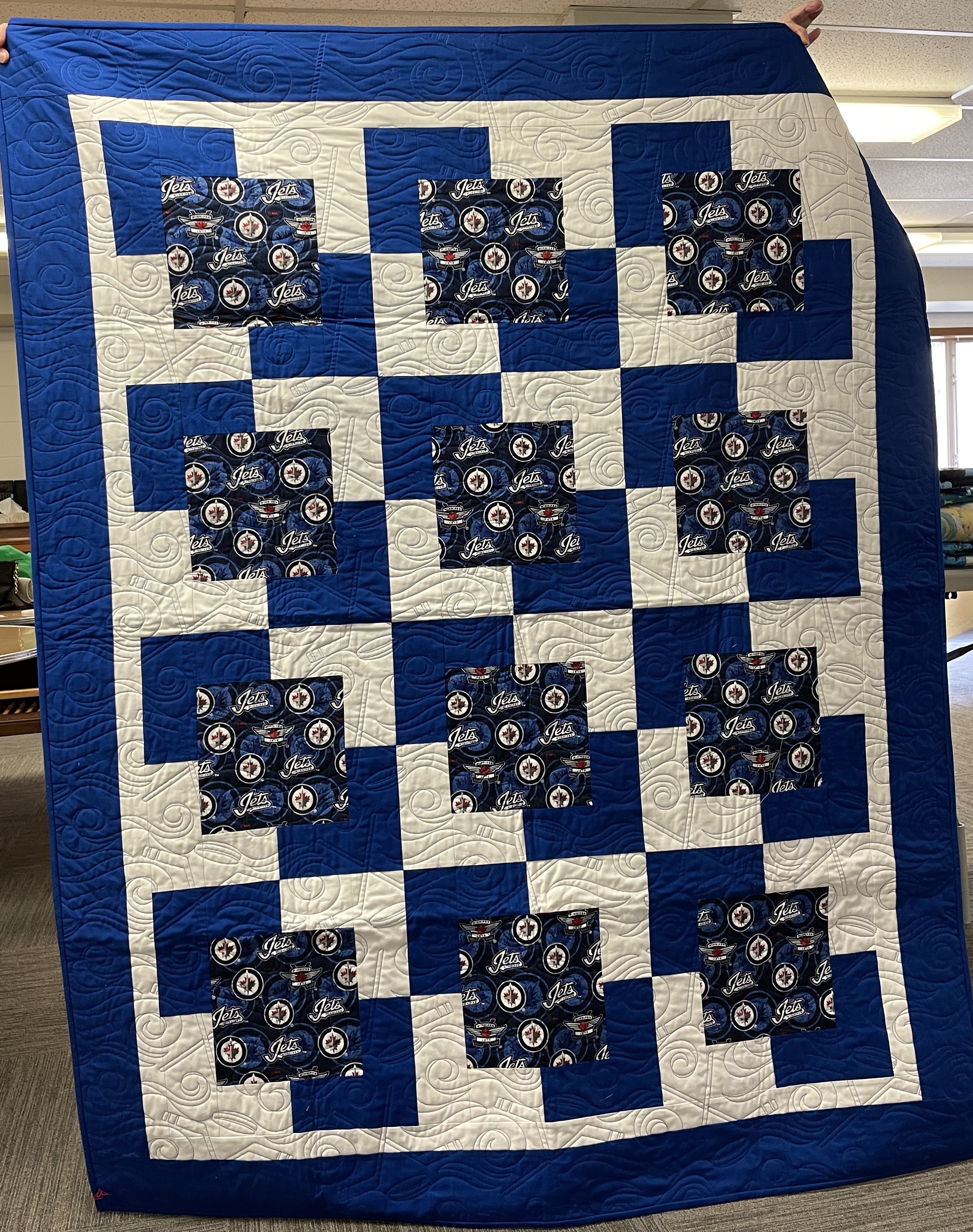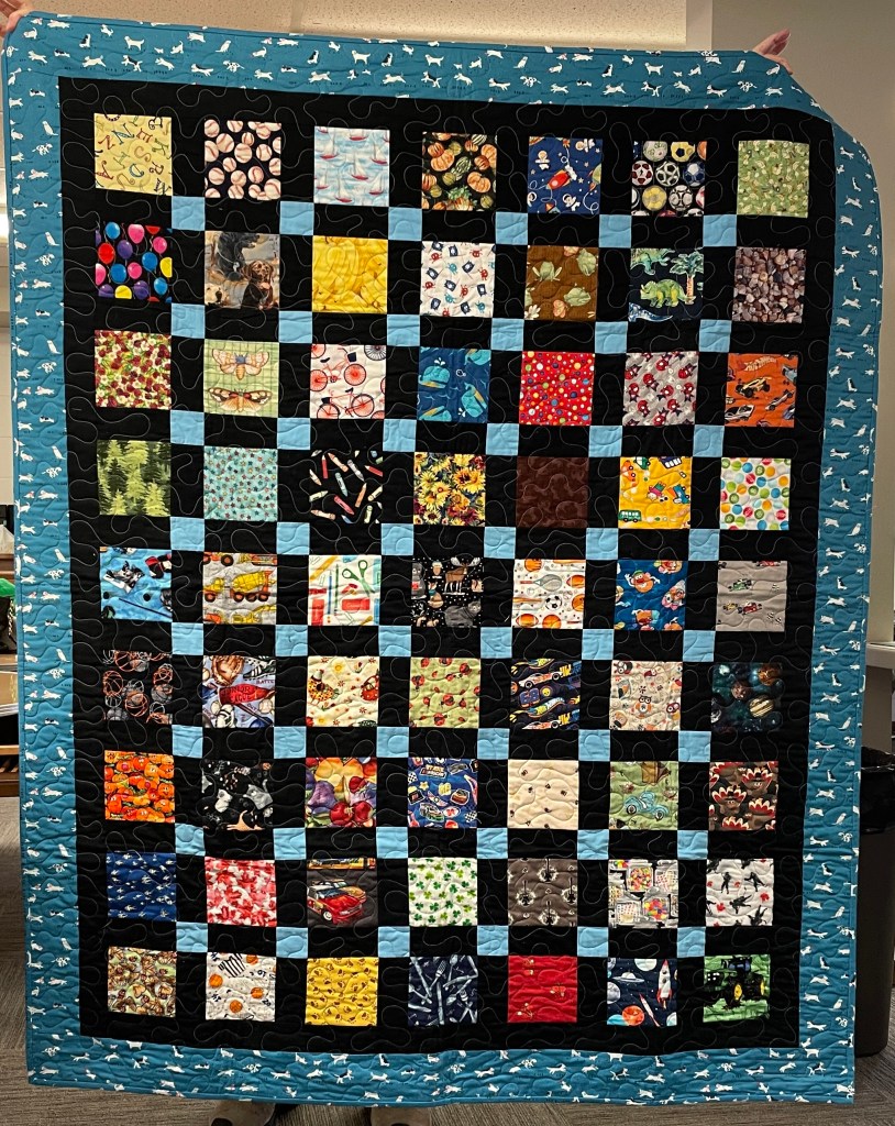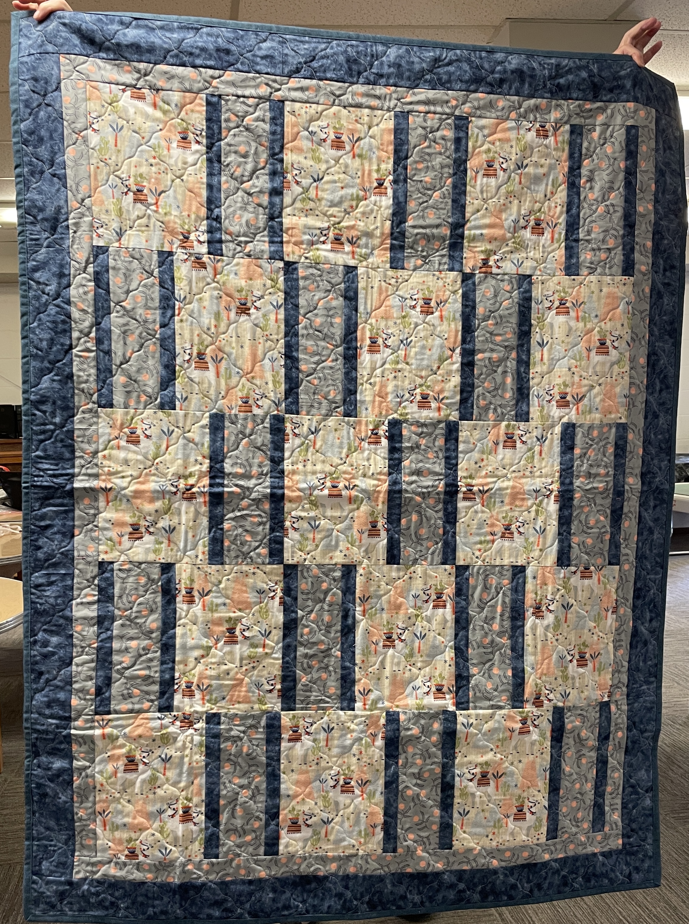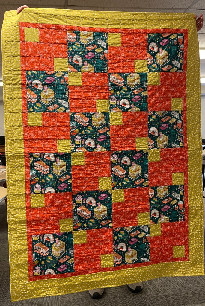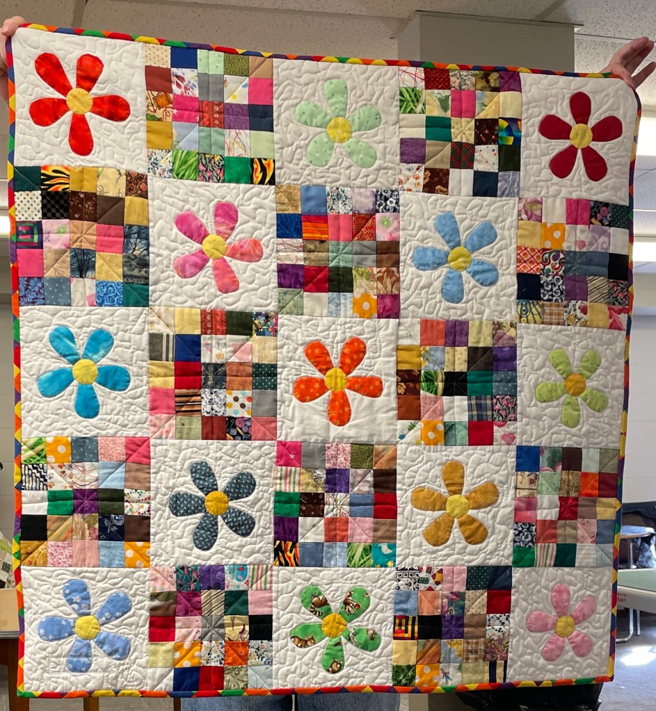At today’s Sit ‘n’ Sew we had quite a show and tell. Thirty-four quilts were displayed and almost 90 placemats. Our shelves are filling up. Thank you to all who contribute their time, talent and fabrics to our Comfort Quilts.