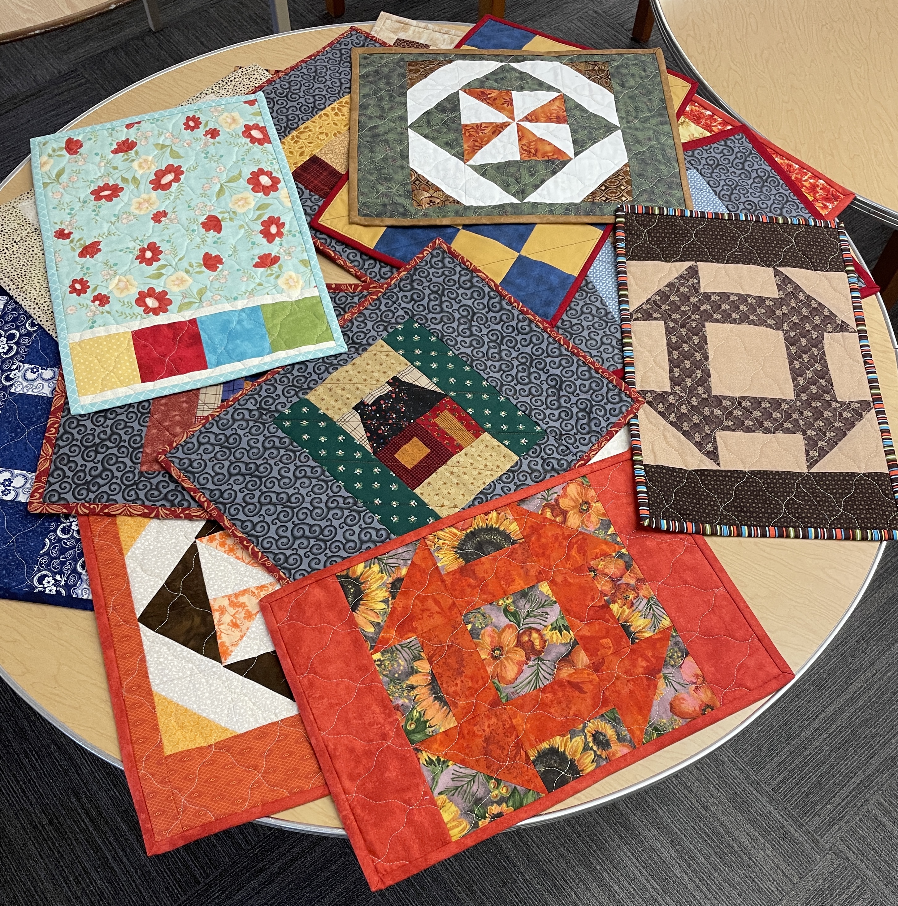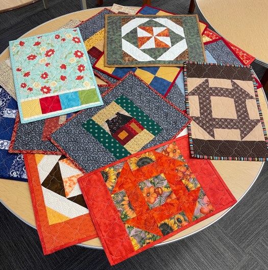 We continue to meet at Maryvale on the 2nd and 4th Tuesdays of each month. Today, although our group was smaller in number than usual, our comfort quilt stash grew by 20 quilts and the placemat collection by 18 placemats. Thanks to all who contribute to making these quilts and placemats.