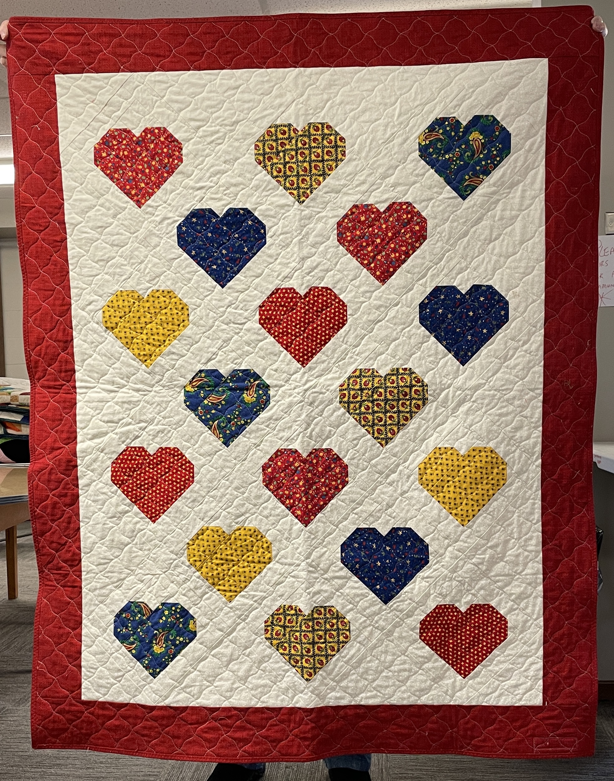 We also received a generous donation to Comfort quilts of 11 quilts from member, Nancy Neely.