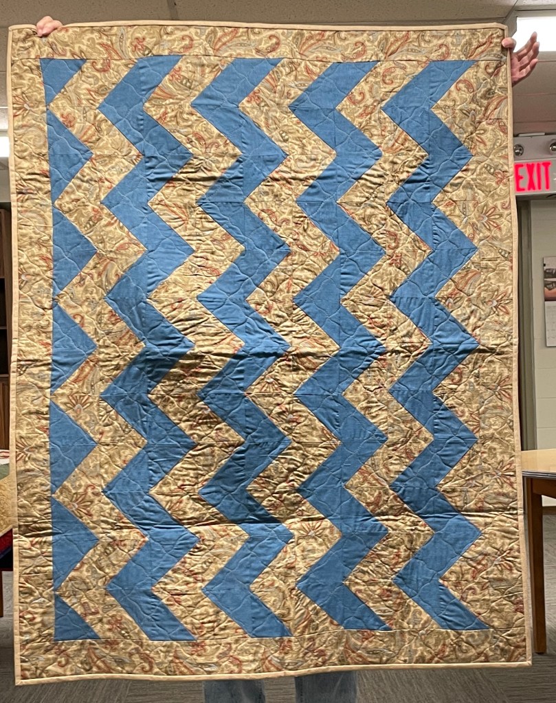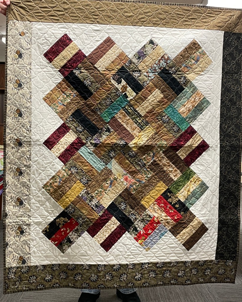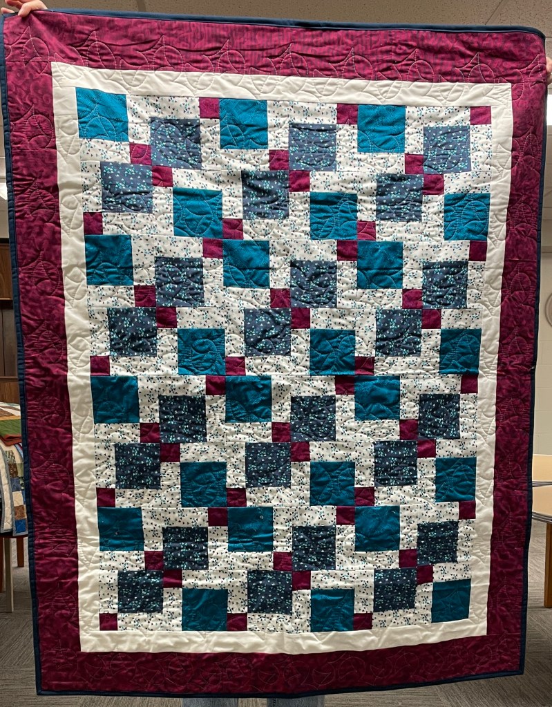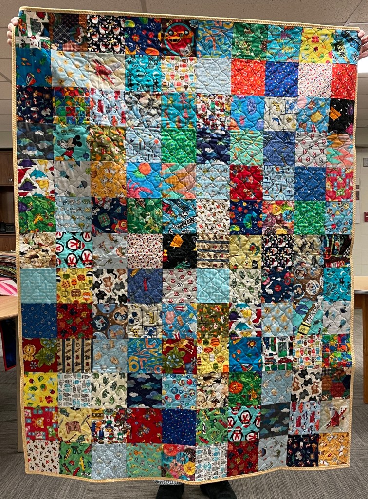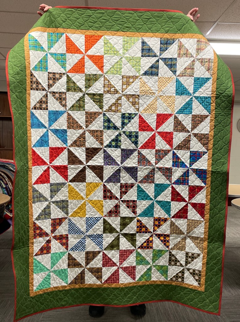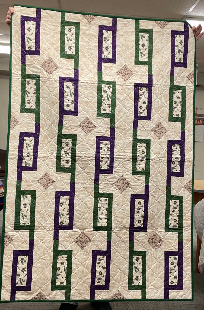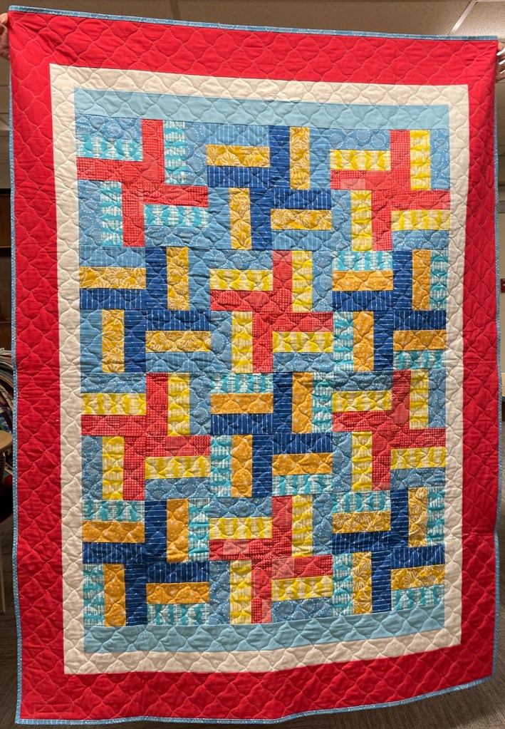 Our guild’s Comfort Quilts committee hosts a Sit ‘n’ Sew every 2nd and 4th Tuesday of the month at Maryvale in west Windsor. Today a number of volunteers gathered to work on comfort quilts. These same volunteers brought in what they had completed recently. To say they have been very busy lately is an understatement. The 41 quilts below are the ones turned in today. Most were made and/or finished by them. Some were donated by others at our last guild meeting. We are off to a good start in 2026!