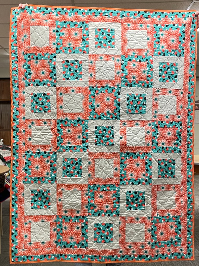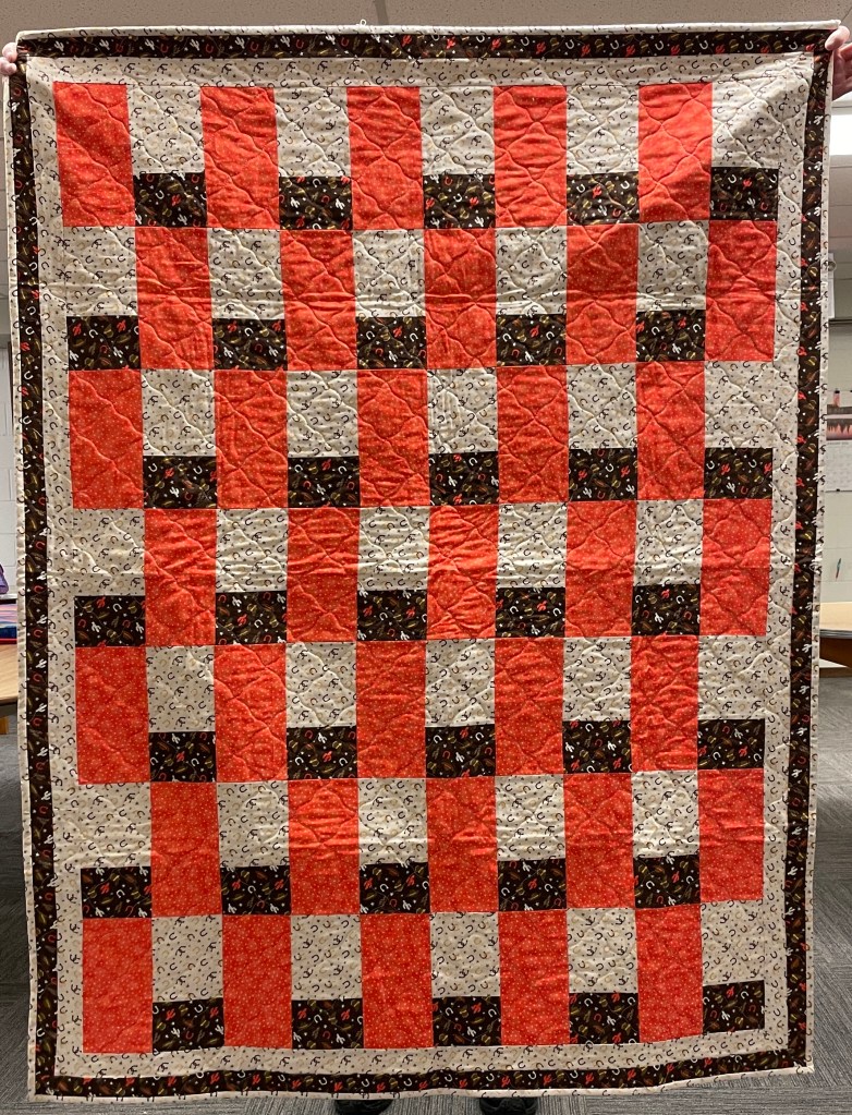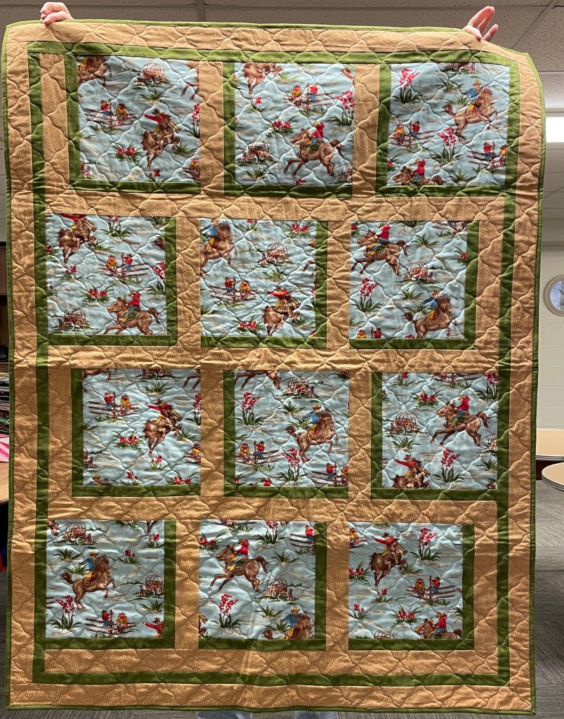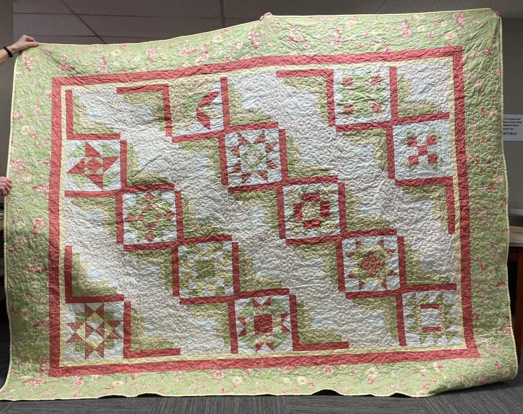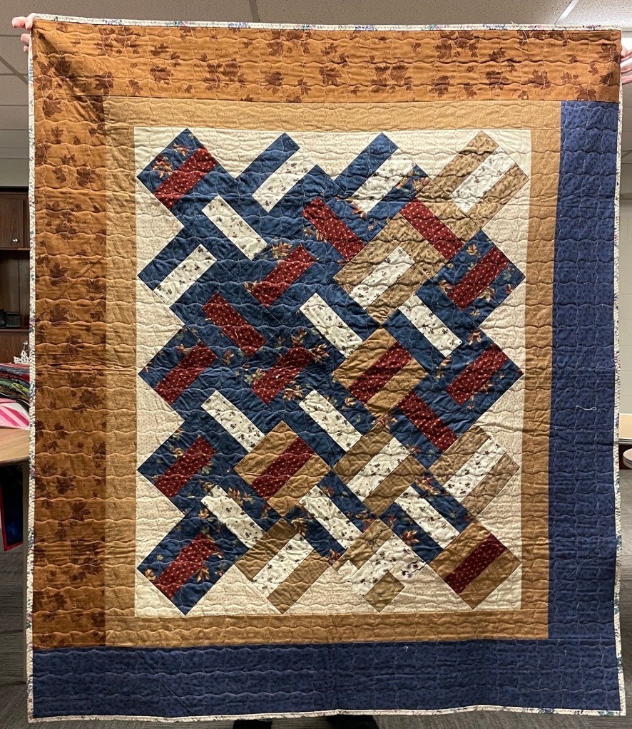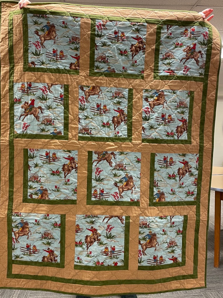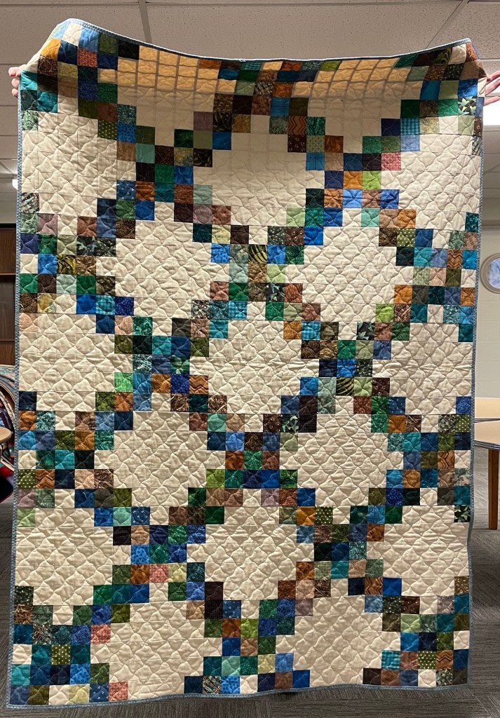 Our guild’s Comfort Quilts committee hosts a Sit ‘n’ Sew every 2nd and 4th Tuesday of the month at Maryvale in west Windsor. Today a number of volunteers gathered to work on comfort quilts. These same volunteers brought in what they had completed recently. To say they have been very busy lately is an understatement. The 41 quilts below are the ones turned in today. Most were made and/or finished by them. Some were donated by others at our last guild meeting. We are off to a good start in 2026!