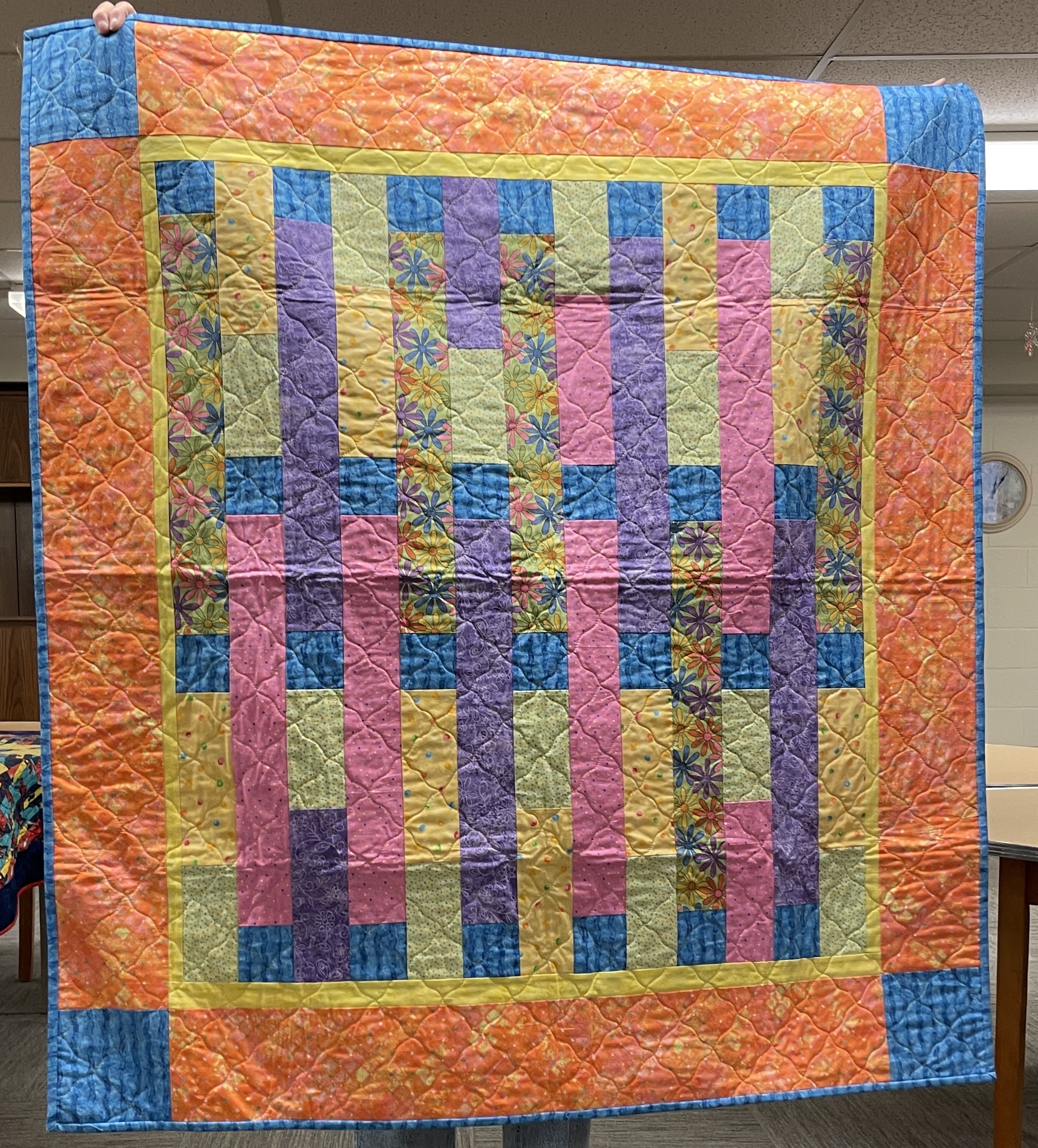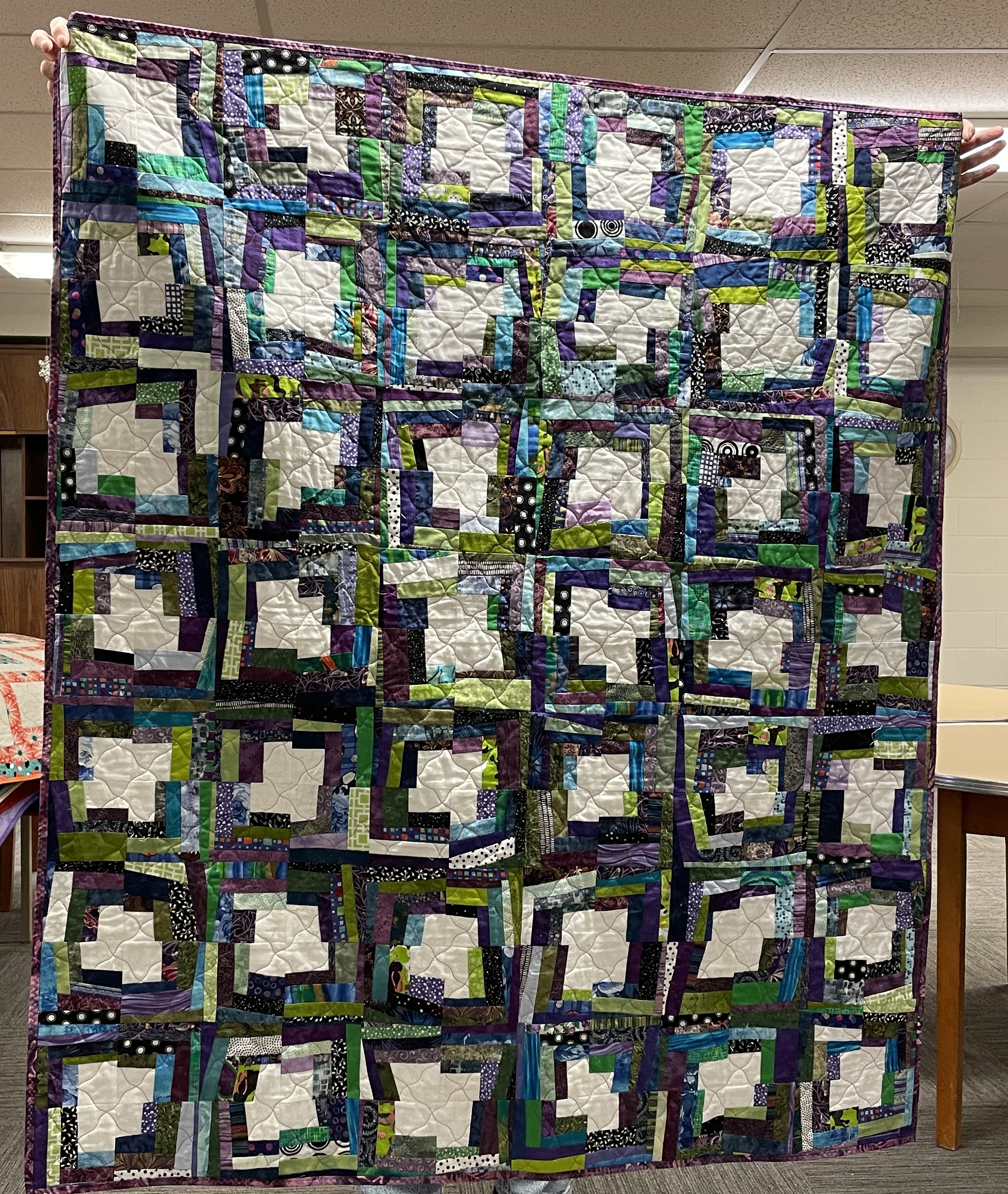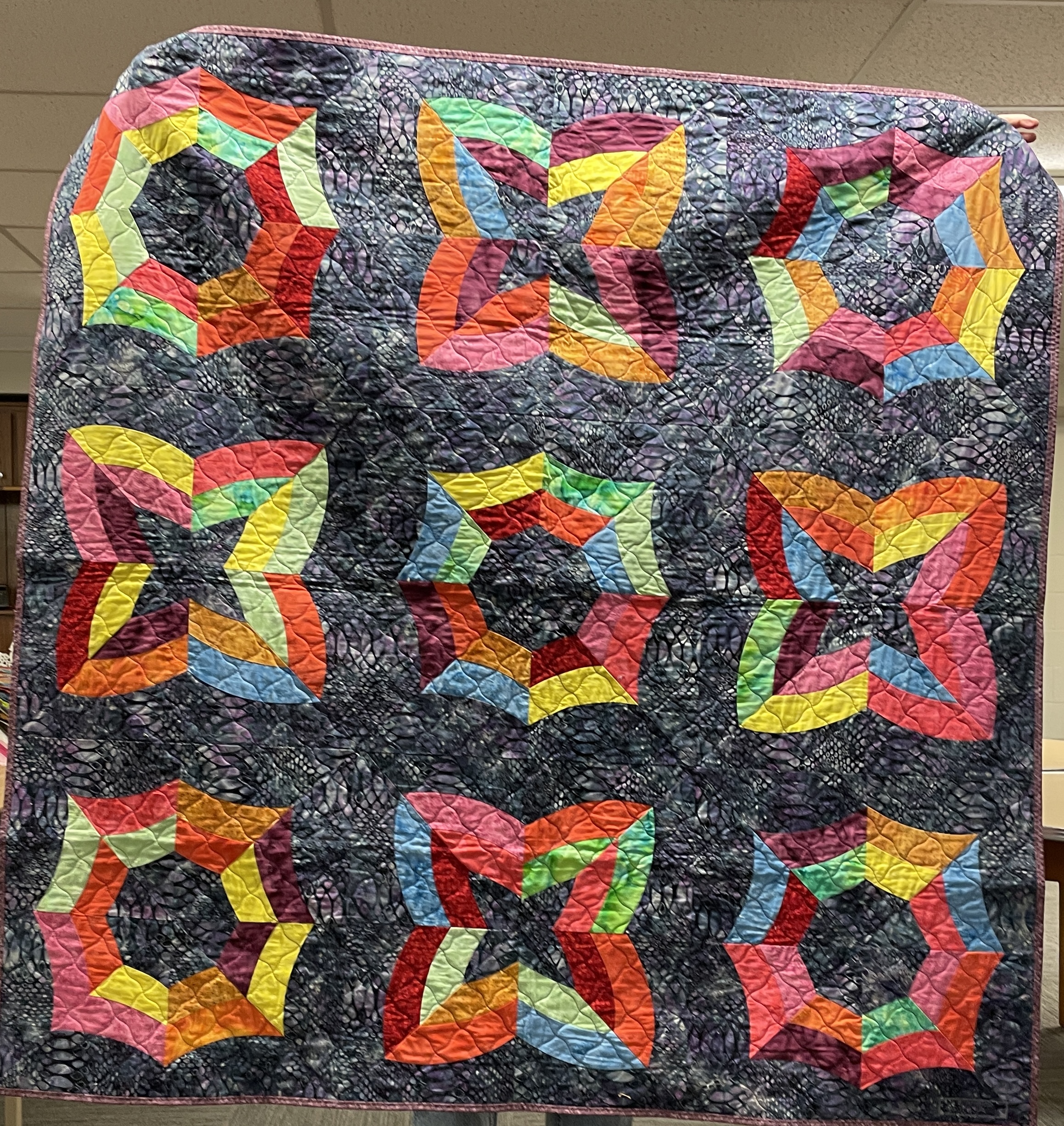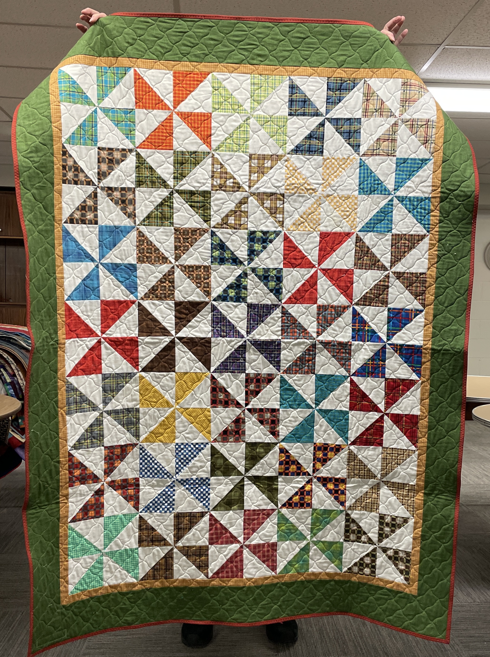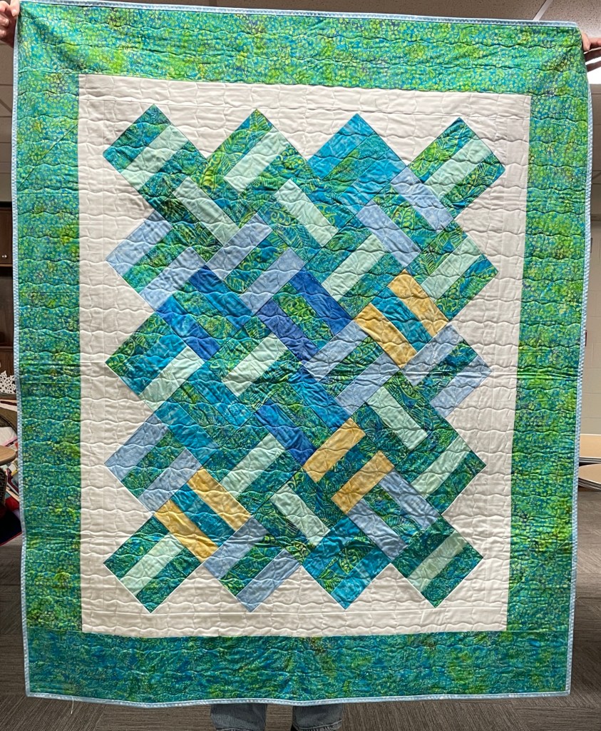 Our guild’s Comfort Quilts committee hosts a Sit ‘n’ Sew every 2nd and 4th Tuesday of the month at Maryvale in west Windsor. Today a number of volunteers gathered to work on comfort quilts. These same volunteers brought in what they had completed recently. To say they have been very busy lately is an understatement. The 41 quilts below are the ones turned in today. Most were made and/or finished by them. Some were donated by others at our last guild meeting. We are off to a good start in 2026!